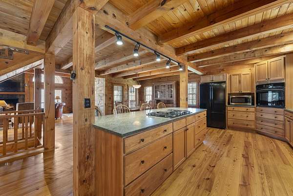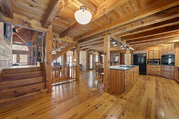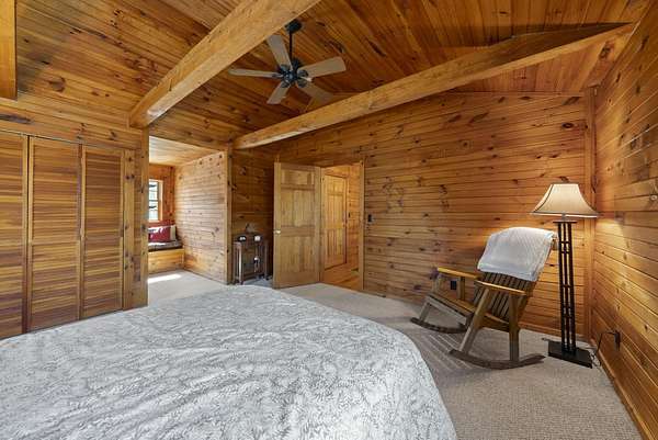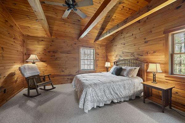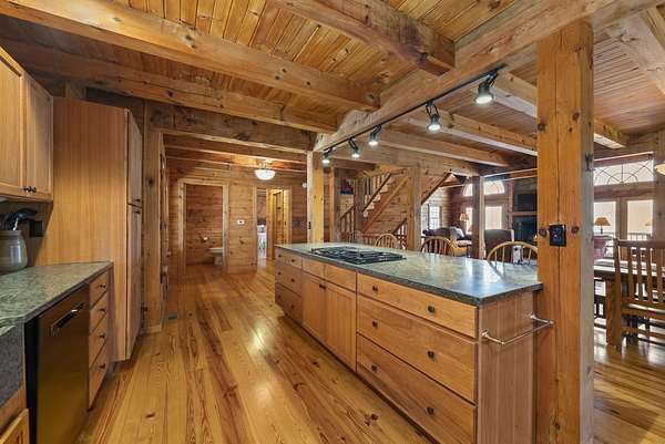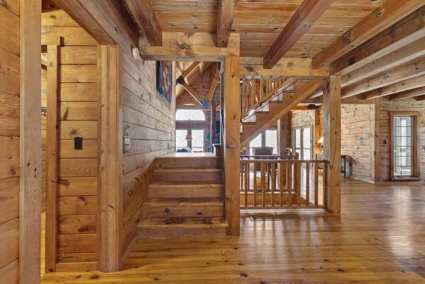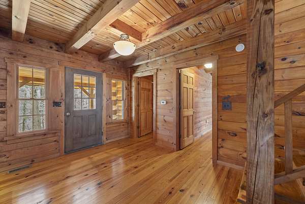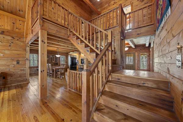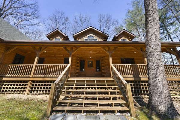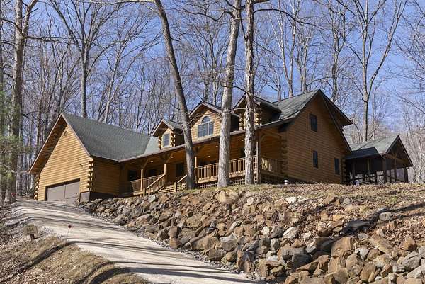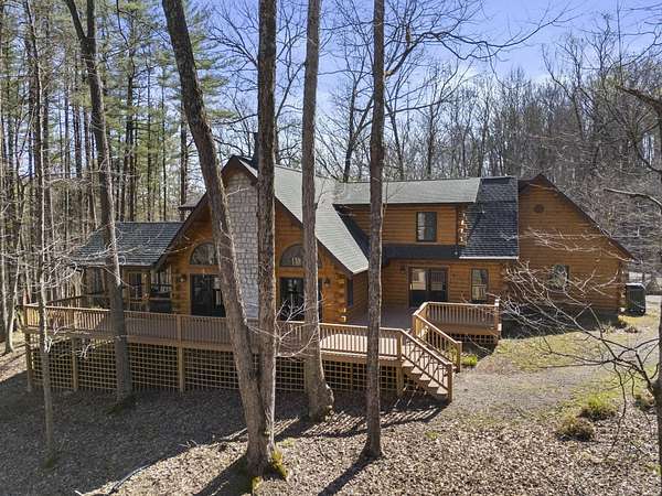Tucked into 1.62 wooded acres in Hide A Way Hills, this custom-built log cabin blends warmth, character, and unmistakable atmosphere. Built in 2004, the 3-bedroom, 2.5-bath home offers the kind of setting that feels both grounded and transportive--private, soulful, and full of charm. Inside, pine floors, antique nails, and a wood-burning fireplace with gas start bring texture and authenticity, while the first-floor owner's suite adds everyday ease. An expansive 8x35 front porch sets the tone, made for slow mornings and quiet evenings, while the screened porch invites you to lean into the surrounding woods and all the moody, cabin-core vibes that make this property feel so special. A 2-car garage and whole-house generator add practicality to the romance, creating a retreat that is as functional as it is unforgettable.
