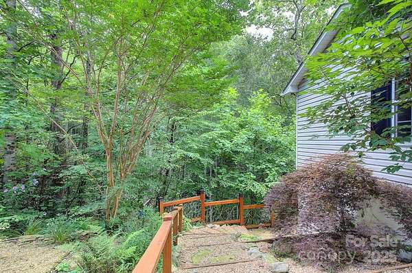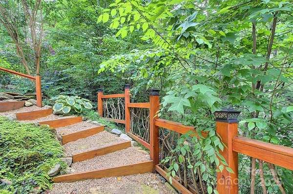 Tucked away in the heart of Pisgah Forest just short drive to downtown Brevard or Hendersonville, this 3BR/2.5BA mountain home sits on 1.76 acres of lush landscape, featuring a private hiking trail, babbling creek, and your own waterfall-all just minutes from DuPont State Forest, Cascade Lake, and Little River. Located in a high demand STR area this home offers a cozy modern interior with rustic charm featuring open floor plan, vaulted ceilings, gas fireplace, updated kitchen and baths, and beautiful hardwood floors. Multiple outdoor entertainment spaces with natural boulders and the sounds of nearby streams create a one-of-a-kind mountain experience. Downstairs, a separate living space with private entrance, bedroom, full bath, and patio is perfect for extended family, friends, or STR. Whether you're looking for a full-time residence, mountain getaway, or income-generating property, this home delivers privacy, comfort, and natural beauty in equal measure.