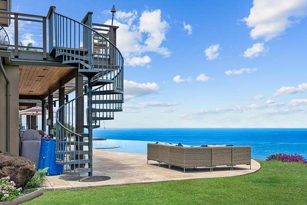 Perched atop 45 acres of Launiupoko’s most coveted slopes, this extraordinary estate offers a rare sanctuary of privacy, space, and incomparable Maui beauty. Sweeping panoramic ocean, outer island, and sunset views define every horizon, while gentle trade winds and the serenity of open land create an unparalleled sense of escape. The 5,863 sq. ft. residence is a masterpiece of thoughtful design, featuring 5 ensuite bedrooms—including dual master suites—5.5 baths, and expansive living spaces that flow effortlessly to multiple lanais. An 80-foot infinity-edge pool frames the horizon, perfect for sunset gatherings or quiet reflection. The 3-car garage has been transformed into a high-end gym, reflecting a lifestyle that values wellness and leisure. Not one, but two 14,999-gallon gravity-fed water tanks provide both potable and agricultural water, supporting a property designed for flexibility, whether as a private compound, agricultural estate, or multi-structure retreat. A 3,800 sq. ft. barn offers extraordinary potential for equestrian, guest, or creative uses. This property is a CPR'd/residential condo property: Main home parcel of 45 acres off a 50 acre parcel. This is more than a home—it is a legacy property, a place where every day is defined by space, privacy, and the timeless rhythm of island life. For the discerning buyer seeking the ultimate Maui retreat, 554 Punakea Loop is a rare and unmatched opportunity.