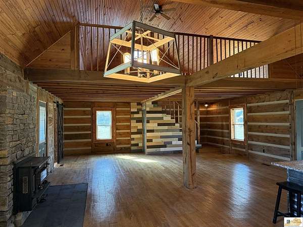 Admit it, you've always dreamed of living in a cabin on the river! Here's your chance. Riverfront living with all the benefits of town. This gorgeous log home on 1.8 acres is located on the beautiful Chaplin River, just down the street from the historic district in one of the coolest towns in Kentucky: Perryville. Famous for its' Civil War battlefields, and it neat shops and boutiques in original 1800's buildings, Perryville is a unique destination in itself. This home is just a short walk from "Merchant's Row". The log cabin has been recently remodeled with a new kitchen, bathroom, plumbing, windows, HVAC, and many other repairs and upgrades. It features a large, open living area with vaulted ceilings and an upstairs sleeping area, in addition to the main bedroom. A large fireplace with wood-burning insert provides a cozy gathering area. An added utility room has lots of space for laundry and storage. Outside, the huge front porch is just begging to have a couple of rockers added. The large lot behind the home has plenty of room for livestock, and a storage building has plenty of space for your extras. At the back of the property lies one of the most beautiful rivers in the country. The Chaplin River flows gently by, and is known to hold spotted bass and channel catfish. Just adding a picnic table or a couple of chairs to the river bank would provide a wonderful area to de-stress and relax. Strategically located only 15 minutes from Danville, and about an hour from Lexington, this home provides access to some of the best destinations Kentucky has to offer, including Center College, Historic downtown Danville and Harrodsburg, dozens of other points of interest, and all the planned industry that will be here in the near future. Call today for your private tour of this great property.