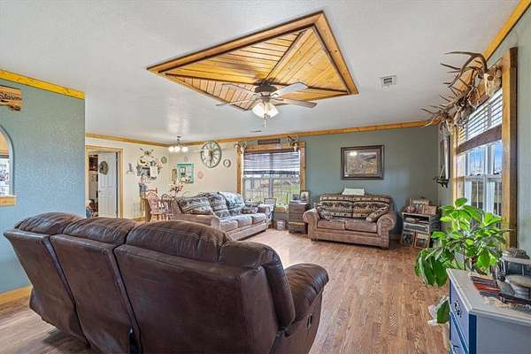 Rare opportunity! Charming 5-acre hobby farm located inside city limits offering two homes and excellent amenities. The main home features 4 bedrooms and 2 baths, while the second home includes 1 bedroom plus an optional 2nd bedroom (no closet)-ideal for guests, extended family, or potential rental income. Property is equipped for country living with a riding arena, barn, pond, and shop building. Plenty of space for animals, hobbies, or recreation while still enjoying the convenience of public water and city access. A unique property with endless possibilities!