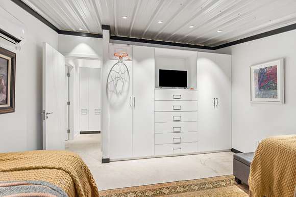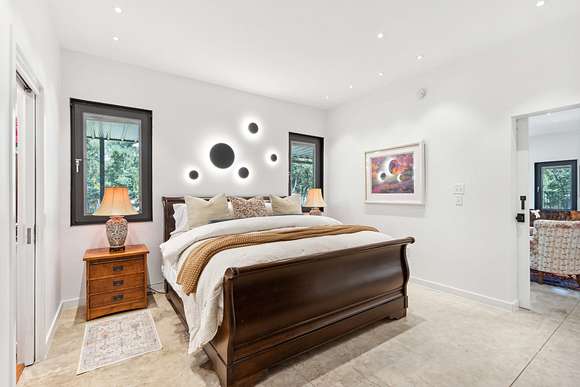 Additional features include two laundry areas, built-in storage and closets throughout, high-speed hard-wired internet, premium lighting and fixtures, and premium doors. Constructed with a fortress-like design using concrete and commercial-grade steel, the home offers extreme insulation and high-end windows for year-round comfort and durability.
