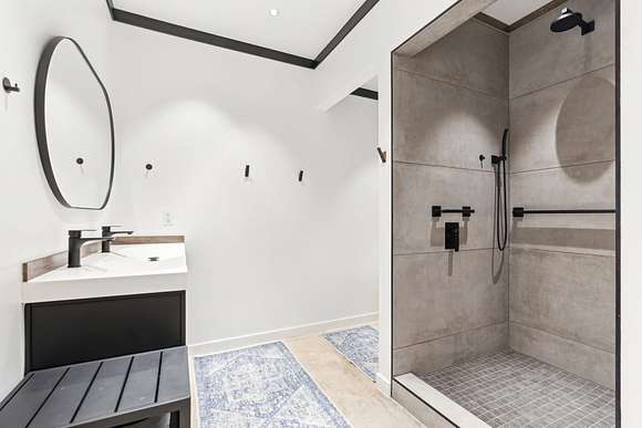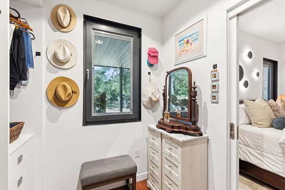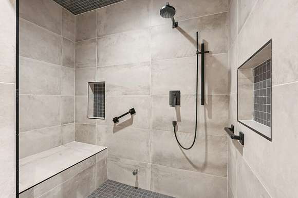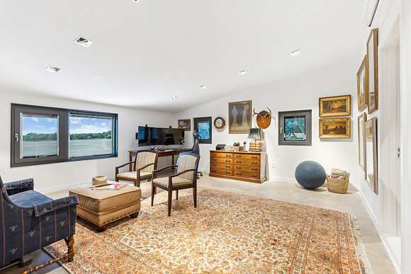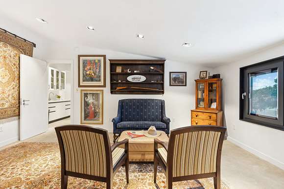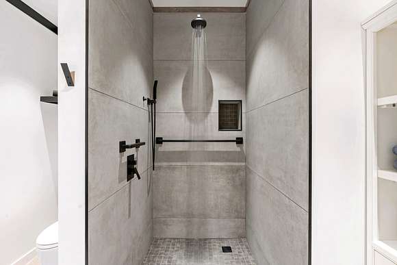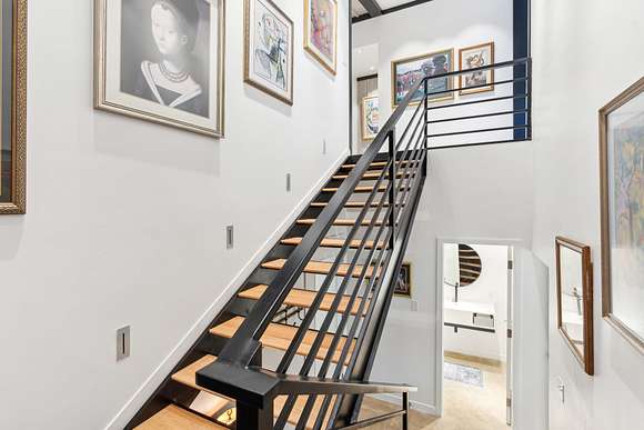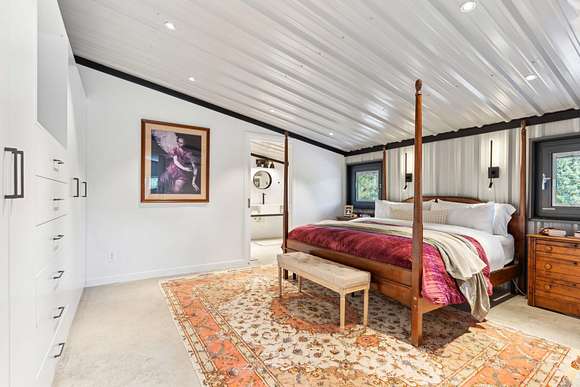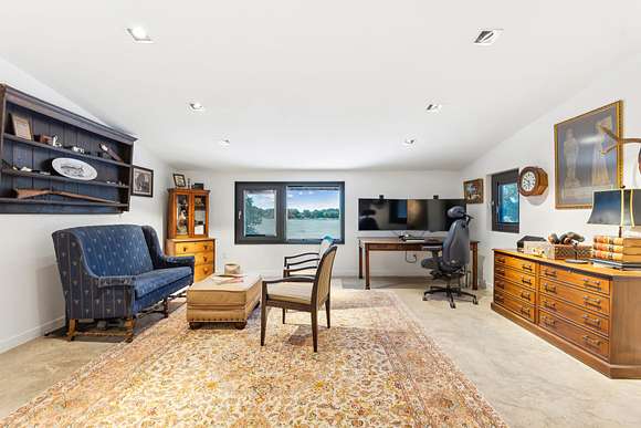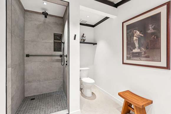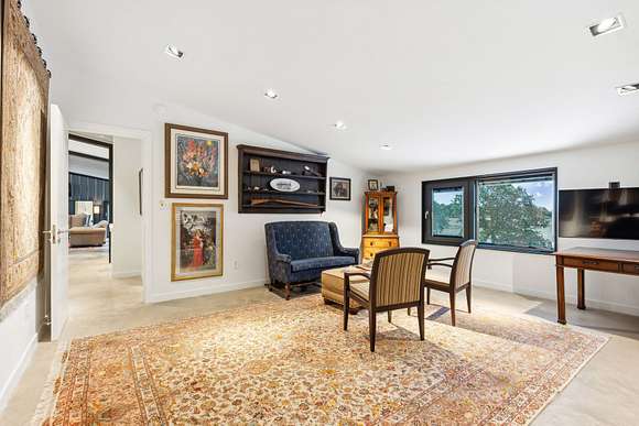 Upstairs includes three additional bedrooms, two full baths, a large guest kitchen, and a generous gathering room with breathtaking views of the lake and surrounding woods--perfect for multi-generational living or guest privacy. An outdoor shower with woodland views adds to the retreat-like ambiance.