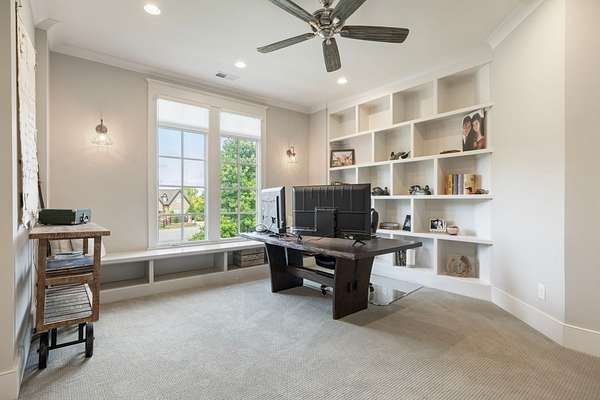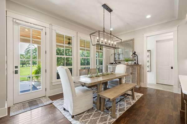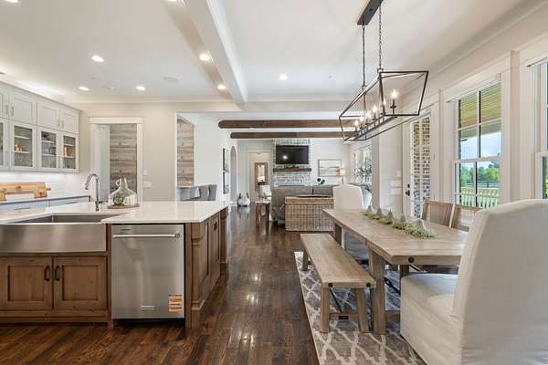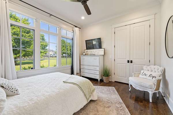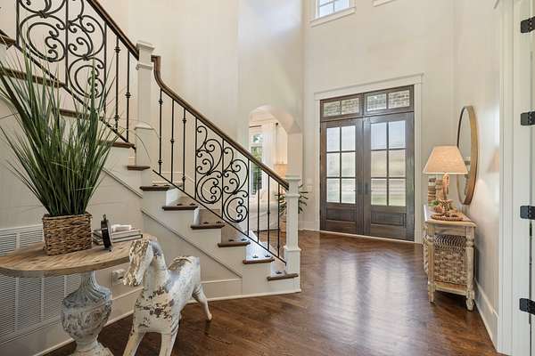 This custom-built home sits on 1.7 flat acres in the highly sought-after Black Hawk neighborhood in beautiful Arrington. The layout features an open-concept main living area with stunning hardwood floors, french doors that flood the space with natural light, and rustic accents throughout. The main level offers a bright formal dining/sitting room with coffered ceilings and two full bedroom suites. Built-in speaker system, home sprinkler system, and automated window treatments. The spacious primary suite includes a spa-style en-suite bath and walk-in closet, while the private guest suite includes a Murphy bed, providing comfort and convenience for visitors, and then transform it into a home office. The chef’s kitchen is equipped with a 48-inch gas range with griddle, built-in refrigerator, oversized island, custom cabinetry, butler’s pantry, wine bar, and a separate cooktop for larger meal preparation needs. The living room is highlighted by a floor-to-ceiling stone fireplace. Upstairs, the home offers two additional bedroom suites, a large recreation room, and a game room, making it an entertainer’s dream! Outdoor living is just as impressive, and it includes a covered patio with built-in gas fire pit, in-ground trampoline, professional landscape lighting, full-yard irrigation, and a fully fenced yard with a high-end electric privacy gate. Enjoy peaceful sunrises from the back patio and vibrant sunsets from the front porch. Additional highlights include a three-car garage, tankless water heater, UV air purifier, and extensive storage and entertaining space.