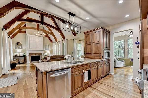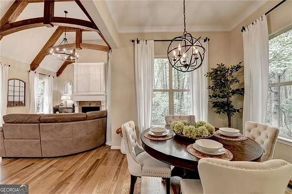 Elegant home with extra lot in a private non-HOA community in the heart of Cumming. The property includes two parcels: a 1.52-acre lot with the home plus an adjoining 1.89-acre lot, totaling 3.41 acres! THE MAIN LEVEL: * Your first step in this home is breathtaking with features you will fall in love with. The arched wood beams in the living room will have you in awe. To the right of the living room you will be enamored with the elegant kitchen that offers custom cabinetry, granite countertops, gas range, and built-ins that is open concept. The dining area is perfect and is in view of all spaces including the sun-kissed tea room that can also be used as a quaint library or possibly a play room for your little ones. *Your beautiful primary suite with a spa like bathroom and custom closet that has the wow factor. The generously sized laundry room is next to outdoor living including freshly stained back deck that overlooks a delightful grassy yard with tons of room. Upstairs There are 2 large bedrooms and a full bathroom. The fully finished terrace level is designed for entertaining and everyday living, complete with a billiards room, large media/entertaining space, and a built-out office that can serve as a guest bedroom as well as a half bath. In total, the home provides 4 bedrooms, 2 full baths, and 2 half baths. All of this privacy is just minutes from Cumming City Center, the Fairgrounds, Fowler Park, Lake Lanier, shopping, and top-rated schools. The home sits on parcel 103-044 and the adjacent lot is parcel 103-045.