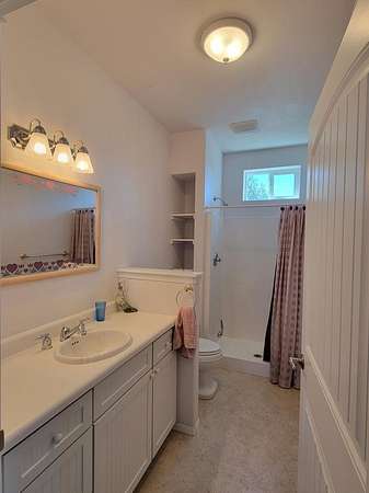 - Breakfast Bar, Ceiling Fan(s), Fiberglass Stall Shower, Linen Closet, Pantry, Shower/Tub Combo, Vaulted Ceiling(s), Wired For Sound