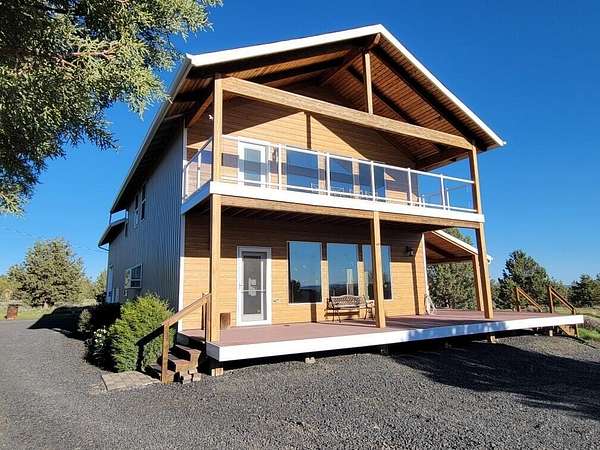 Custom built home on 5 Acres with fantastic views of the Cascades and surrounding area. This home has 3 bedrooms (Primary +1 upstairs) and 2 baths with a 3rd bathroom w/shower in Shop. There is a huge bonus room ready to be finished that is adjacent to the primary bedroom upstairs. Approx. 300 sqft room has potential for a study, workout room or office. Upper level overlooks the living area and also offers views through the large windows with power shades. The kitchen has copper countertops and is located on the lower level along with living room, 2nd bathroom and 3rd bedroom. There are decks facing west on both the upper and lower levels to watch the sun set behind the Cascades. Just as custom as the house is the attached 2040 sqft garage (20x28) and shop (30x40) with (4) 14' doors and are insulated & heated and include a 3rd bathroom w/shower and an additional hobby room of approx. 125 sqft. Several outbuildings for firewood, equipment, animals, storage and more.