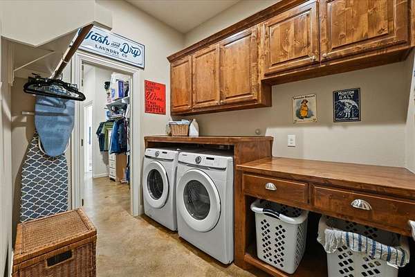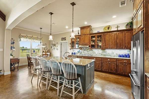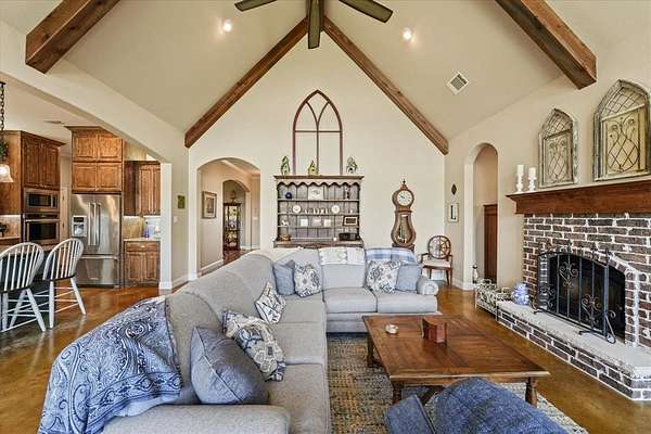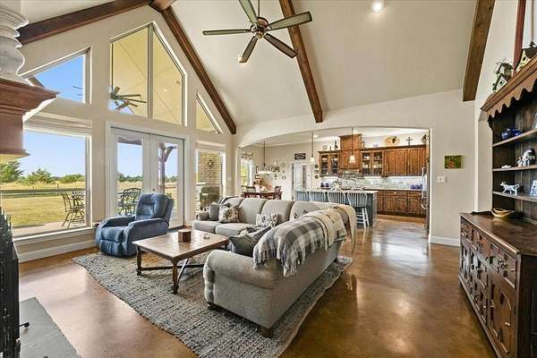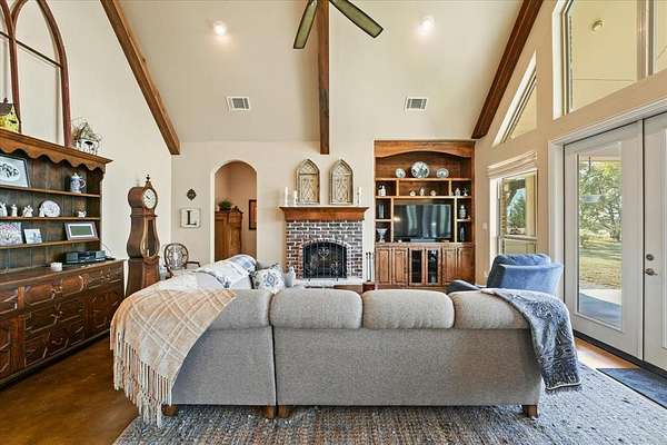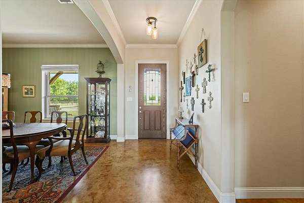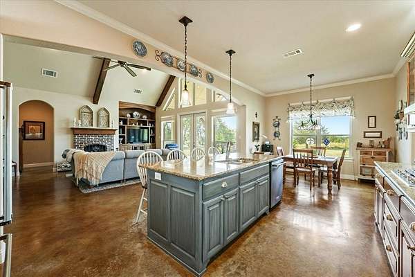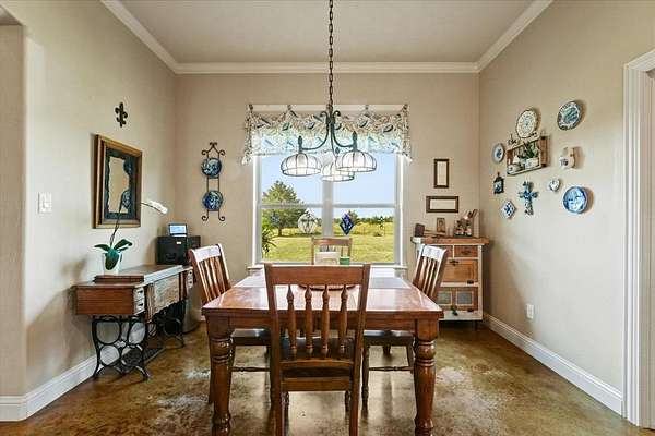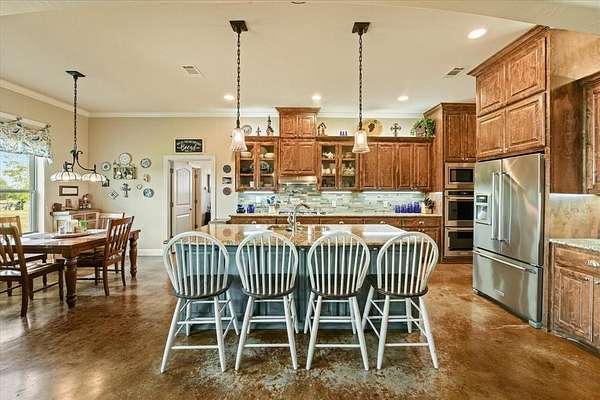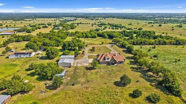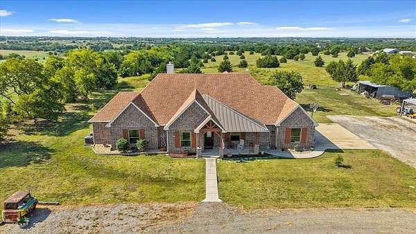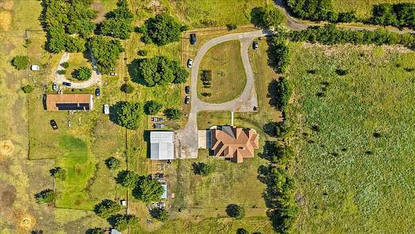 This stunning 3,142+ sq. ft. brick custom home with 3 bedrooms and 3 full bathrooms offers timeless design, modern comfort, and the peace of country living all with easy access to nearby cities. Featuring an attached 2-car garage and a spacious covered back porch, this property is perfect for enjoying the breathtaking sunrises and sunsets over your own 10+ acres. Inside, you'll find custom cabinets, quality craftsmanship, and abundant windows that flood the home with natural light. The thoughtful layout includes a bonus room upstairs and another bonus room downstairs, providing flexible space for an office, game room, or guest area. Outdoors, the property offers a shop and an RV-covered parking area with hookups, making it ideal for hobbyists, storage, or travelers. The land is well-suited for agricultural use if the new owners desire, and the open spaces provide endless possibilities. Located near major roadways, this home combines the beauty of rural life with the convenience of quick trips into town.