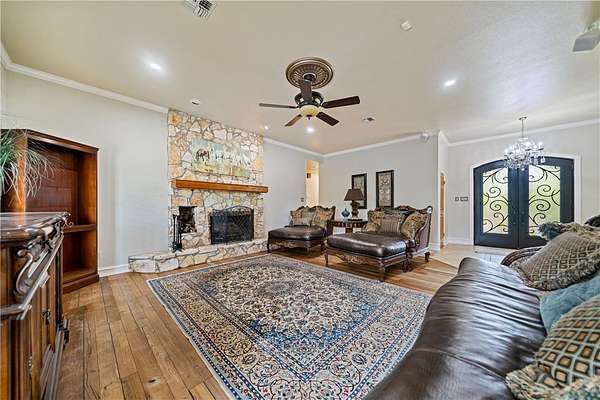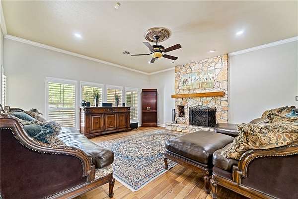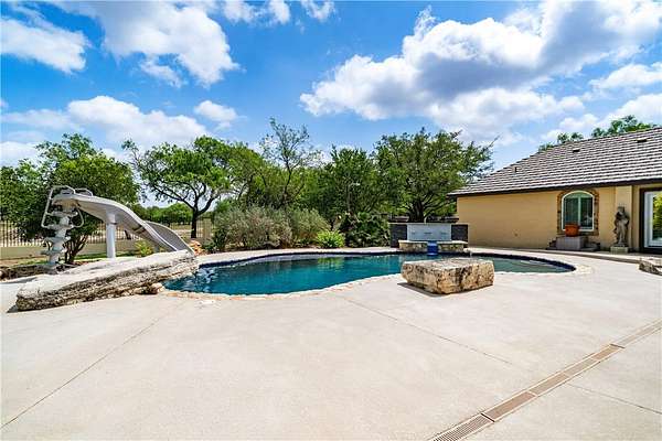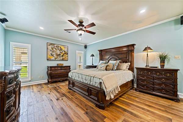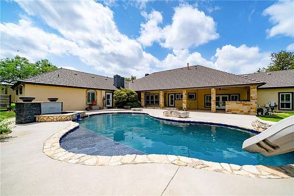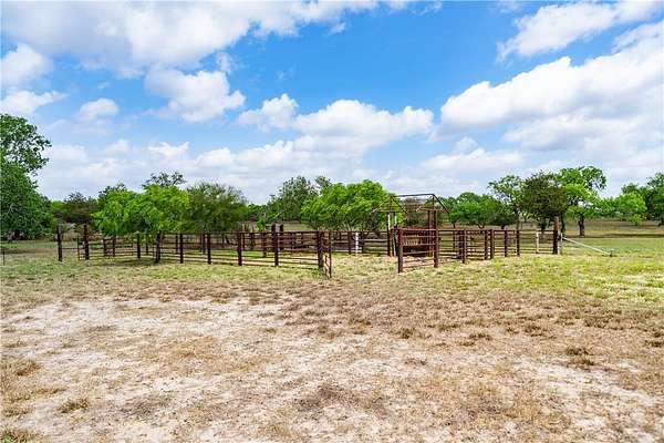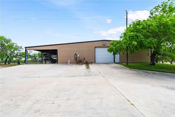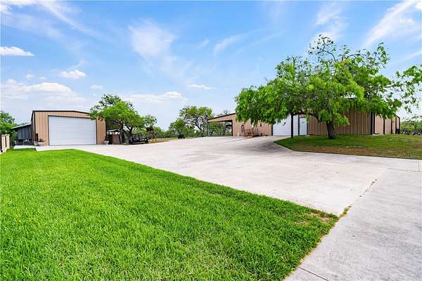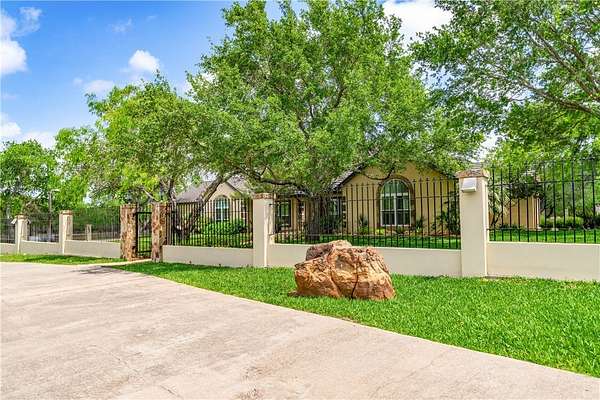 An exceptional, one-of-a-kind ranch estate set on approximately 75 acres just minutes from the Calallen center, offering a rare combination of refined living, extensive improvements, and true South Texas ranch lifestyle. This meticulously maintained property showcases pride of ownership at every turn, delivering both luxury and versatility. The residence spans approximately 4,322 sq.ft. and features 4 bedrooms and 3.5 baths, thoughtfully designed for both everyday comfort and large-scale entertaining. Three spacious living areas provide flexibility for spaces such as a game room and gym. In addition, there is a very rare safety room basement! The primary suite is a true retreat, featuring a spa-like en-suite bathroom with impressive finishes, a bath/shower combination and an expansive closet that exceeds expectations. Outdoor living is equally impressive, highlighted by a stunning swimming pool with a dramatic waterfall feature and a large covered patio designed for entertaining and enjoying the surrounding views. A durable Alco metal roof enhances both longevity and performance, while the gated entrance creates a strong sense of arrival and privacy. The land is well-equipped and highly functional, featuring deer-proof fencing, cross fencing, a pond, cattle pens, and an abundance of wildlife. Mature, groomed trees are scattered throughout the property, enhancing both beauty and usability. Improvements are extensive and thoughtfully designed, including 3 substantial metal buildings: a 40x60 workshop complete with a ranch hand apartment, a 30x50 RV shop, and an impressive 60x120 air-conditioned, finished-out car shop featuring a bathroom and a second rare basement space. Additional property features include a reverse osmosis system and a generator, providing efficiency and peace of mind. This property offers a unique opportunity to own a turnkey ranch estate that seamlessly blends luxury, functionality, and convenience-an increasingly rare find in the Calallen area.