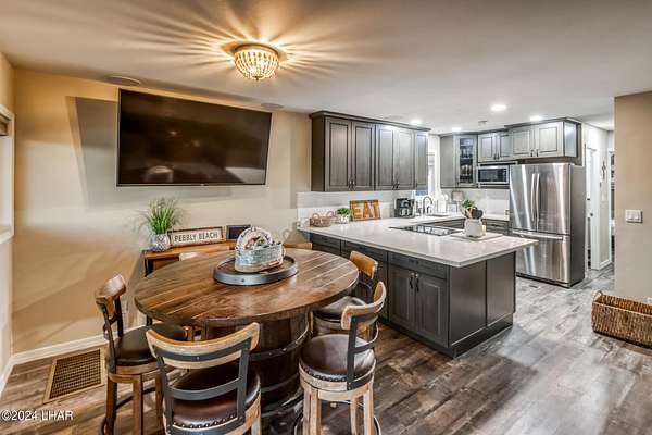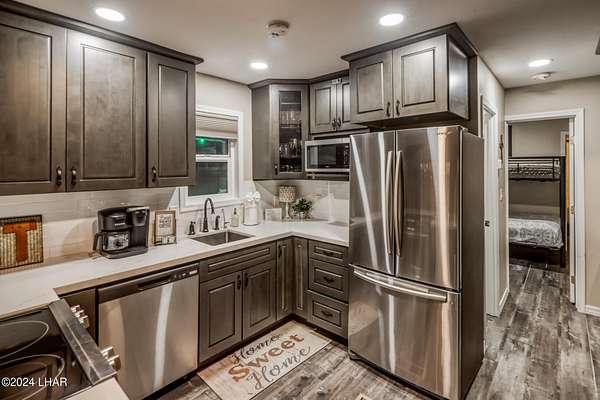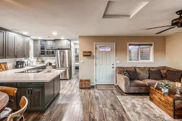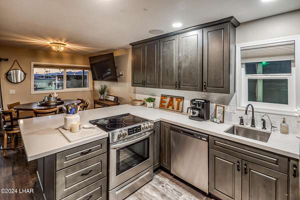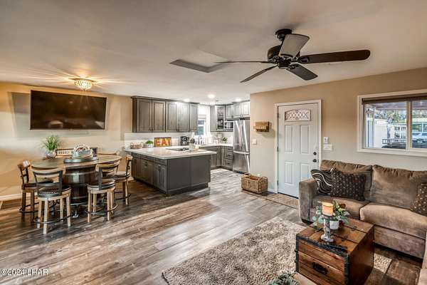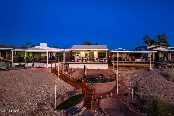 *On leased land* Welcome to 555 Beachcomber Dr. B15! This is absolutely the ULTIMATE property for the Best Lifestyle Lake Havasu has to offer. Not only is this home located on the Island, but it is truly WATERFRONT with steps directly to you personal beach and water access. With three private decks to enjoy this amazing location, you will never want to leave. THE VIEWS!!! The view is impossible to appreciate from the photos and something to be experienced in person. You will enjoy upclose water and sunset views that are unrivaled. The tranquility of the water, mountains, the docks and bay is simply spectacular. This location and view also comes with a completely remodeled home that was completed in 2020. The interior is perfectly designed with an open concept, generous great room overlooking the lake providing convenient flow between the indoor and outdoor living spaces. You will be greeted by modern, upscale finishes throughout. Parking is no problem with a covered 40 x 12 area for the Havasu toys. Call now for your private showing and discover the incredible Beachcomber experience!