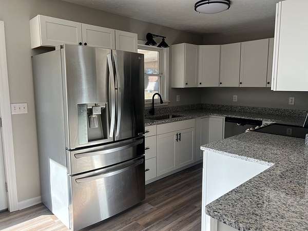 Beautifully Updated Home on 2.58 Acres! This spacious property offers the perfect blend of country living and modern updates! Set on 2.58 acres, this home has been extensively updated in 2025 -- featuring a new roof, flooring, kitchen cabinets, granite countertops, dishwasher, light fixtures, toilets, hall bath vanity, French doors, storm door, garage door openers, garage door, interior garage lighting, and fresh interior paint. The stove was replaced in 2024, and the heat pump (new in 2019) was professionally serviced in 2025. A new water heater was installed in 2018. All appliances stay, including the refrigerator in the garage. Garage shelving and a gun cabinet (optional for buyer) also remain. An outbuilding offers additional storage or workspace. This move-in ready home offers peace of mind and plenty of space both inside and out -- perfect for enjoying the outdoors and entertaining! Listed with Maggie Sheets -- 270.836.5086