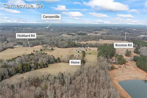 From Carnesville City Hall, turn left onto Hull Ave, continue on Athens Street, then turn right onto Royston Road, continue on Royston Road until you get to Franklin Co High School, once the school is on the left, turn right onto Hubbard Road, house is located about .5 miles on the left.