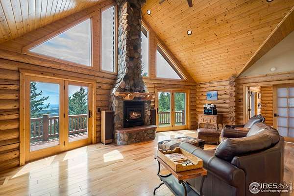 Est $8,905/moPrivacy & views. Log construction w/ 4 beds, 5 baths, huge deck, plus 5-car attached garage. Excellent high speed internet. Main floor owner's suite, 2nd 5-piece bath upstairs. Wildlife abounds. Solid hickory floors. Gourmet kitchen w/ heated hickory cabinets, slab granite & stainless appliances. Knotty pine ceiling,metal roof, finished walk-out basement, covered deck. Easy access - only 20 minutes to Loveland.