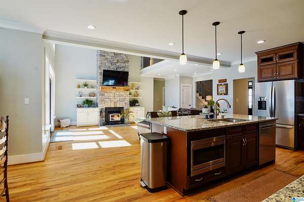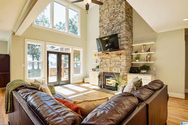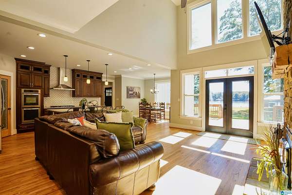 Custom-built waterfront home that sits on 2.9 level acres on the main river, offering sweeping sunrise and sunset views. The home features 4 spacious bedrooms, each with a full bath, a large flex room ideal for guests, recreation, playroom or office with a bathroom. HUGE spa like master bath with two walk-in closets! The expansive front porch sets the tone for peaceful living & the back decks have unbelievable lake views! A bonus is the detached 3-car garage with a one-room apartment that includes a full bath, kitchenette & living area. This space is perfect for guests, multigenerational living, or potential rental income. It has all the lake must haves, a two-stall boathouse with lifts, private boat launch wide enough for a seaplane, & access ideal even for wake boats. Located in the heart of the lake, you will enjoy big-water views, year-round recreation, and unmatched convenience. Beautifully built & designed for the lake lifestyle & making lasting memories.