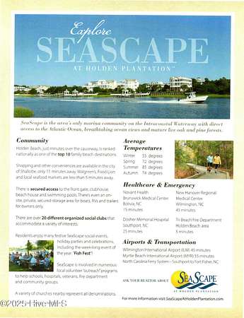 This is truly an amazing opportunity to own a beautiful residential building lot in the waterfront, water access community of Seascape @ Holden Beach! This .42 acre parcel is located in this amenity-rich, coastal location just 5 miles from the beach! Seascape is a premier community offering an amazing amenity package that includes a ''Gone with the Wind'' style manor clubhouse with a huge dining hall and kitchen and sitting rooms. Indoor & outdoor pools, sauna, and 2 Jacuzzi's a state-of-the-art fitness center, numerous walking trails, tennis court, on-site protected marina on the Intracoastal with a fully equipped boat house for cleaning fish and sitting to socialize. You will have access to the beach club located on the sandy shores of Holden Beach, so no need to pay for parking or look for a spot! Order from local seafood restaurants and enjoy dinner on the deck with the sea breezes after a nice day at the beach. Seascape is located just past the Lockwood Folly Inlet, offering prime access to the Atlantic Ocean and one of the best fisheries in the world! Fresh off the boat seafood all around you in minutes! Call today to schedule your community tour and see this one-of-a-kind luxury living that could be the next place of your dreams!
