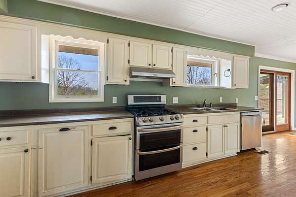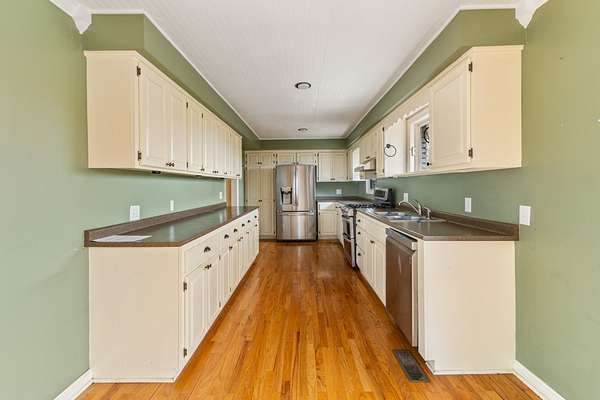 - Dishwasher, Double Oven, Gas Oven, Gas Range, Refrigerator, Stainless Steel Appliance(s)