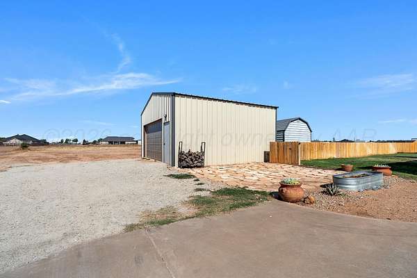 Est $2,911/moSHOP, SHOP, SHOP in Bushland South. This beautiful complete with 3-bedrooms with isolated primary suite, 2 full bathrooms an open-concept kitchen that flows seamlessly into the spacious living area, along with a nicely sized laundry room for added convenience. A 20x20 shop provides extra workspace or storage, while the beautiful patio with a cozy fireplace is the perfect place to relax and take in stunning West Texas sunsets.