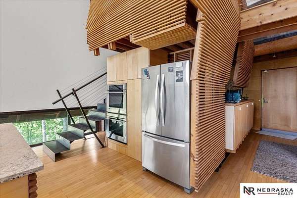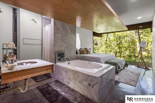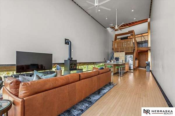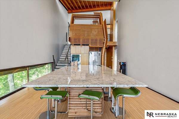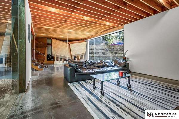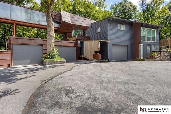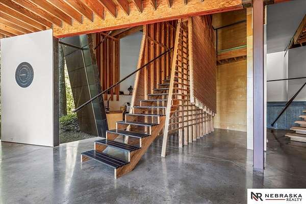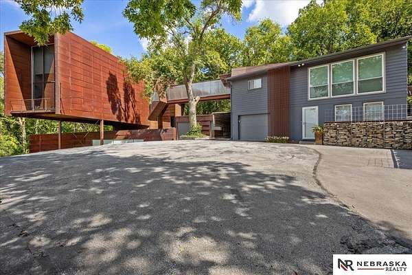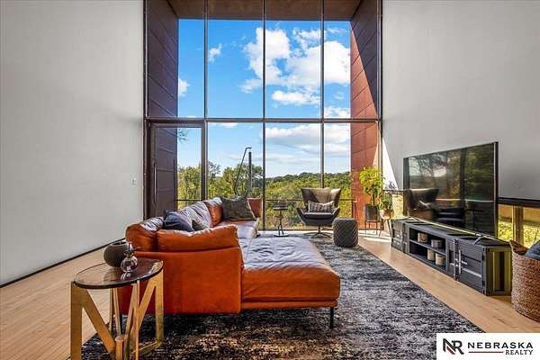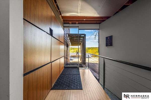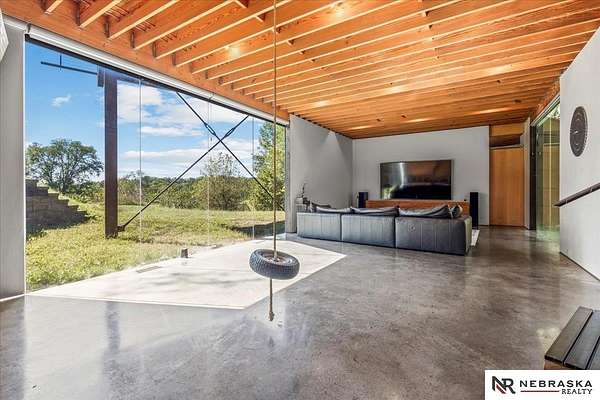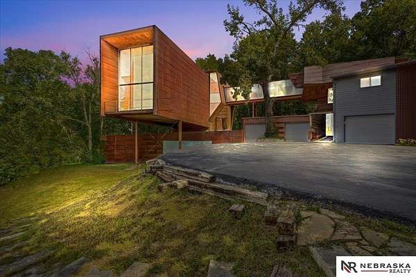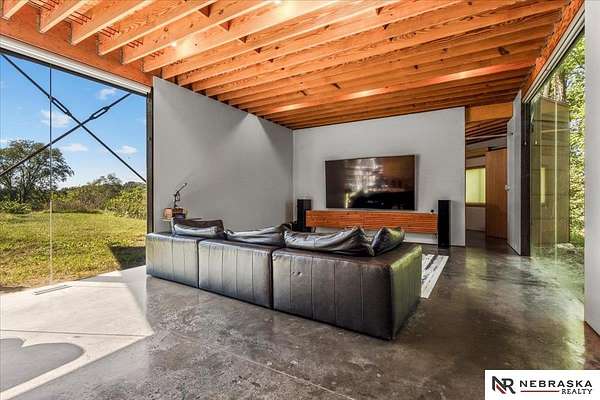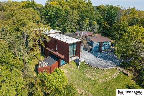 Est $7,334/moJennifer Gatzemeyer, M: 402-312-4644, jennifergatzemeyer@gmail.com, https://www.nebraskarealty.com - Sophistication meets modern style situated on 10 acres in private Ponca Hills! One-of-a-kind design by award winning Architect Randy Brown. Home features a mix of wood, glass and concrete elements to merge industrial style with the nature of its surroundings. Style meets functionality with 4 bed, 6 bath and additional features such as home gym, office, guest space or multigenerational living. Horses permitted and large outbuilding perfect for storage, business, workshop. Unique opportunity for amazing family home or perfect AIRBNB rental.