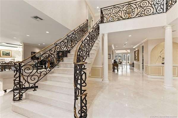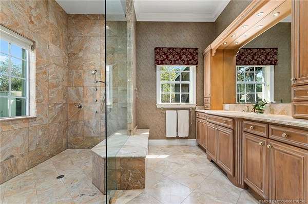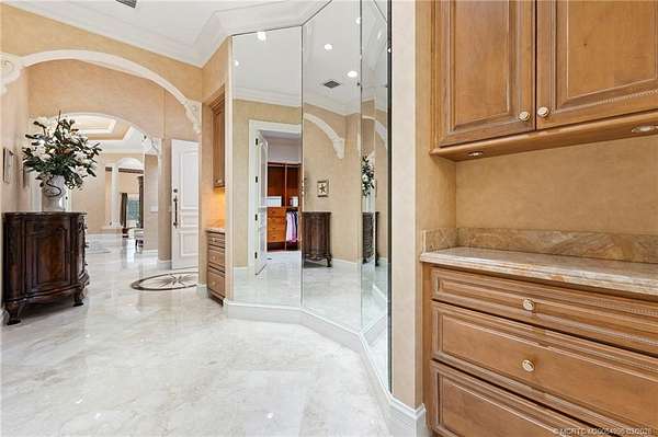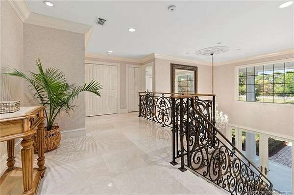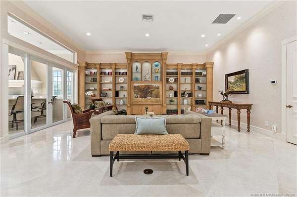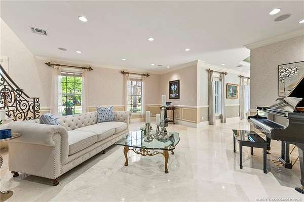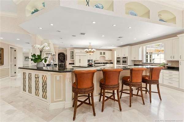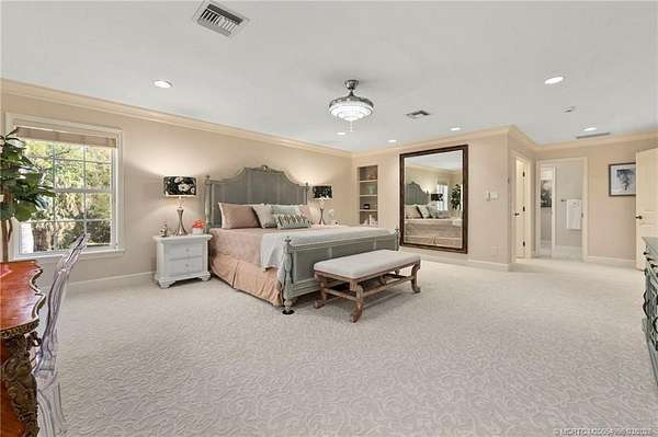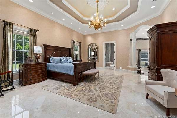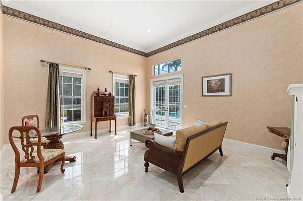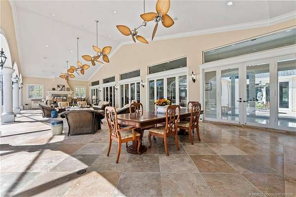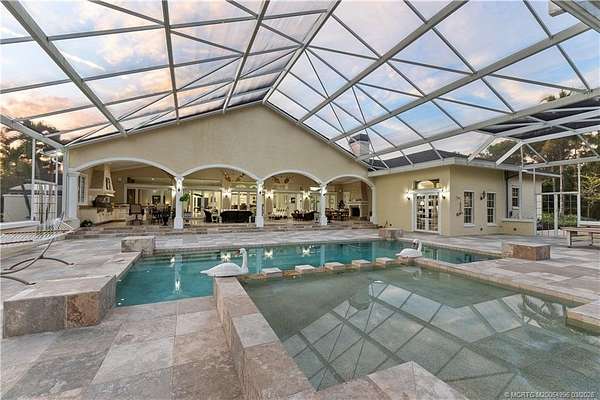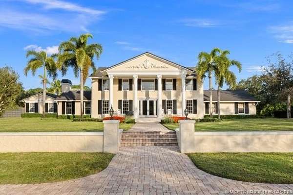 Exquisite 12-Acre Plantation-Style Estate with Private Hangar in Palm City. Welcome to a truly remarkable estate that seamlessly blends timeless Southern charm with modern luxury. This private sanctuary offers a grand 7,466-square-foot residence, 1,444 square feet of covered outdoor living space with full summer kitchen, gas fireplace with additional screened patio, a 3 tiered pool and an expansive 4,800 square-foot hangar with office/bath and direct taxiway access. This estate is designed for those who appreciate fine craftsmanship and elegant architecture. From the moment you arrive, a gated entrance and tree-lined driveway lead you to the stately home, with both formal and family living spaces & private office, and a Chef's kitchen with an island and multiple prep stations. The spacious primary suite features two baths & private sitting room. With three additional bedroom suites upstairs this estate provides ample space for comfortable living, entertaining, and working from home.