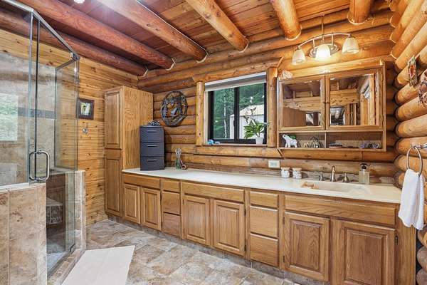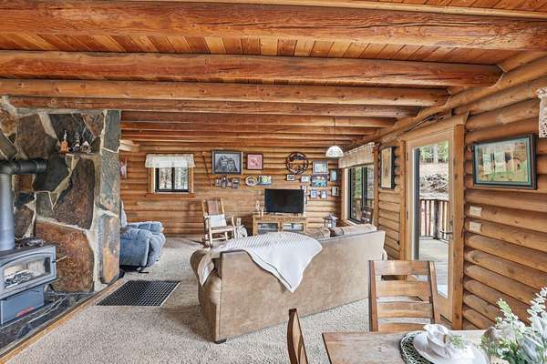 Offered for the very first time by the original owners, this exceptional property spans over 38 acres of private, fenced timberland-an incredible opportunity to own a true legacy estate. The beautiful log home features 3 bedrooms and 3 bathrooms, blending rustic charm with comfortable living. Warm wood interiors, natural textures, and expansive windows create a cozy yet spacious atmosphere that perfectly complements the surrounding landscape. Outside, the 1,088-square-foot shop provides ample space for equipment, storage, hobbies, or workspace needs-ideal for those seeking functionality alongside country living. With over 38 acres of fenced timber, there is room to roam, explore, and enjoy ultimate privacy. Whether you're looking for a peaceful retreat, recreational property, or full-time country living, this one-owner log home offers a rare and remarkable opportunity.