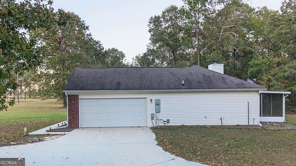 Welcome to 5555 Carlton Ln, Garfield, GA 30425, a Bulloch County Georgia home for sale that combines peaceful country surroundings, practical one-level living, and approximately 5.00 acres per MLS/public data. This brick-facing home with vinyl siding is marketed as a 3-bedroom, 2-bath residence with approximately 1,388 square feet, offering a functional floor plan and a flexible mix of interior and exterior spaces for everyday use. From the curved concrete driveway approach, the property presents broad yard areas, mature trees, open sky, and an attached 2-car garage that supports daily convenience and strong curb appeal. At the front entry, the home opens into a welcoming living room with a reading nook area, vaulted ceiling, carpet flooring, and a fireplace, with French-door access to a screened back porch that extends usable living space outdoors. The living room flows into the dining area and attached galley kitchen, creating efficient movement between gathering, dining, and meal prep. The kitchen area is shown with a cutout view to the living room, pantry storage, laundry closet, and direct entry to the attached two-car garage; the kitchen and dining spaces are represented with vinyl tile flooring. From the main front entry, the left-side hallway includes a coat closet and access to Bedroom 1, which can also function as an office/flex room, plus Bedroom 2, with both secondary bedrooms shown with carpet flooring. At the end of this hallway is the secondary full bathroom with single vanity and shower/tub combo. Further down the hallway to the right is the primary suite on the main level, shown with tray ceiling, a large walk-in closet, and a primary bath featuring a single vanity with additional counter space, built-in makeup area, and walk-in shower. Exterior site details add important buyer clarity: the rear outbuilding is a structure built around and protecting the deep well, and there is also a separate rectangular concrete slab in the backyard where a utility building previously sat. Seller-reported system update states the HVAC is a RunTru by Trane unit installed in July 2025. Marketed utility profile includes private well, septic, and central HVAC; buyer should verify all measurements, utility providers, system ages/conditions, permits, boundaries, allowable use, and future improvement plans during due diligence. Approximate mileage by common road routes places the property about 9 miles from Portal-area destinations, about 15 to 20 miles from Statesboro destinations (depending on destination point), about 67 miles from Augusta destinations, and about 72 miles from downtown Savannah destinations; actual travel times vary by route, traffic, and conditions. Buyers searching Garfield GA homes for sale, Bulloch County homes with land, Georgia acreage property, single-story homes near Statesboro, or country homes with virtual tour access will find a strong combination of setting, layout efficiency, and usable land here. Full Matterport 3D tour available in Virtual Tour link; VR-headset friendly with VR mode enabled (where supported). Price and terms negotiable; seller will review all reasonable offers. Submit your best offer. Showings via ShowingTime or contact listing agent. Listed by Weichert, Realtors - Webb & Associates. Each Weichert franchised office is independently owned and operated. Information deemed reliable but not guaranteed; buyer to verify all details. Equal Housing Opportunity.