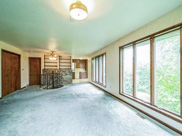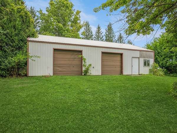 Est $1,965/moHard surface acreage on treed lot. 54x 32 shed for all your country toys and storage. 2 car attached garage to ranch home boasting of the 4 season room to enjoy all year long. 1st floor laundry. Metal roof, spacious kitchen with numerous cabinets, build in desk and numerous built in shelves throughout home. Walkout lower level with family room and fireplace and bedroom. Private well water, central air and lovely yard.