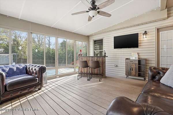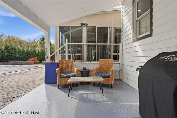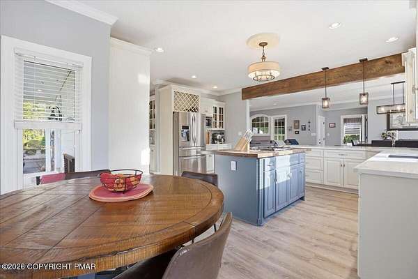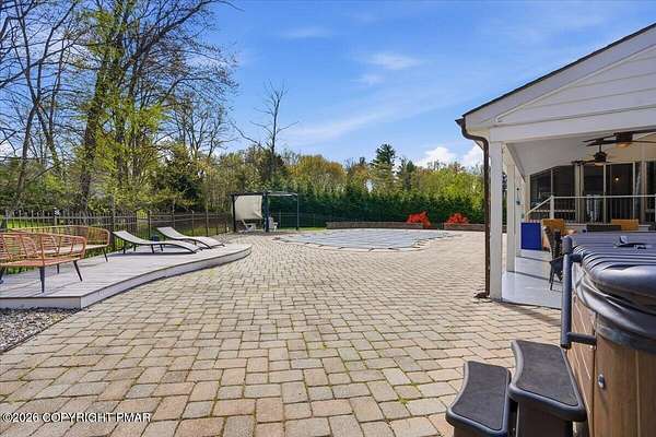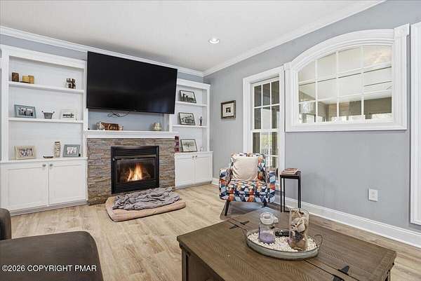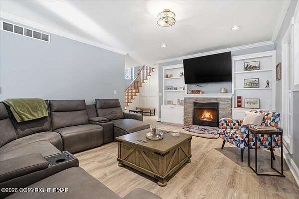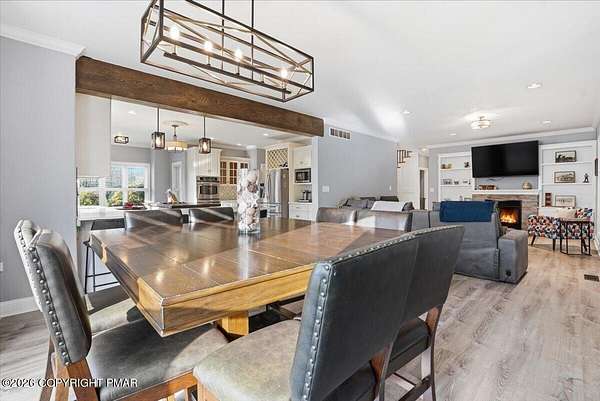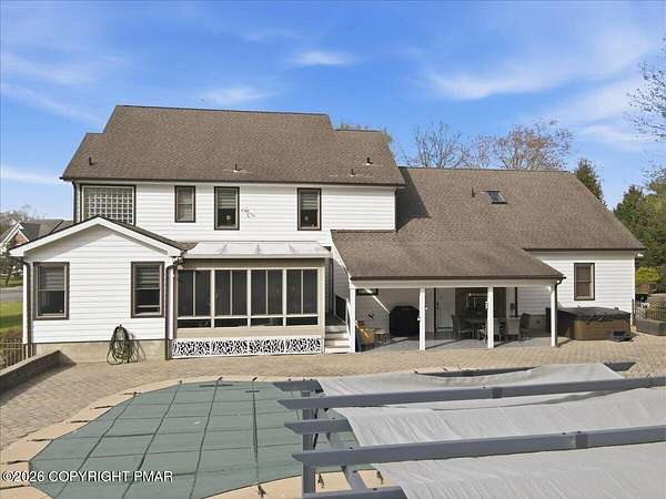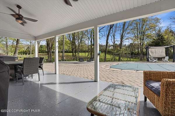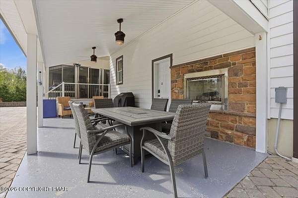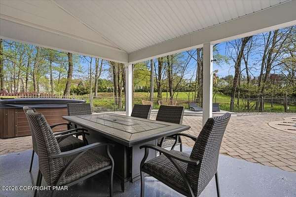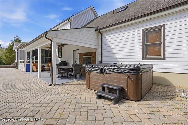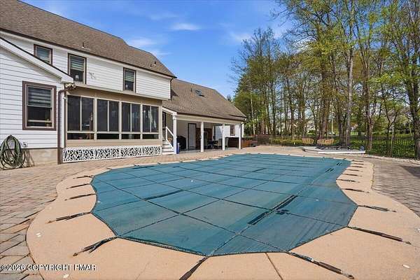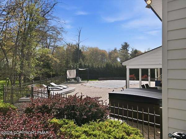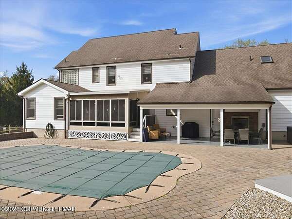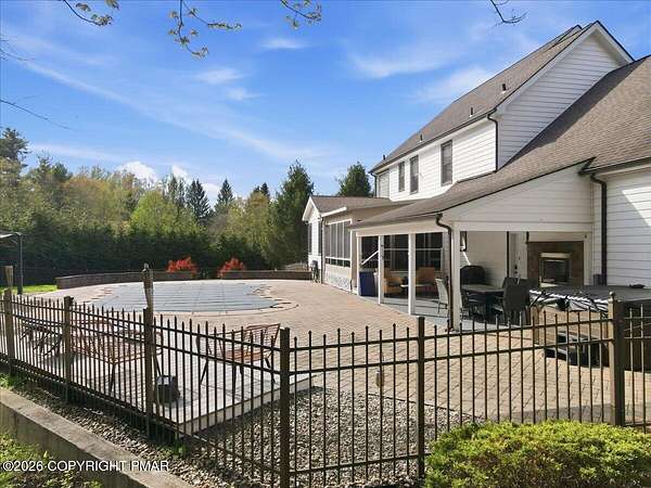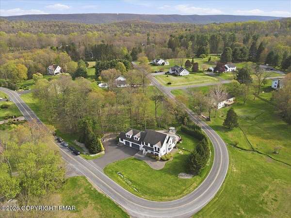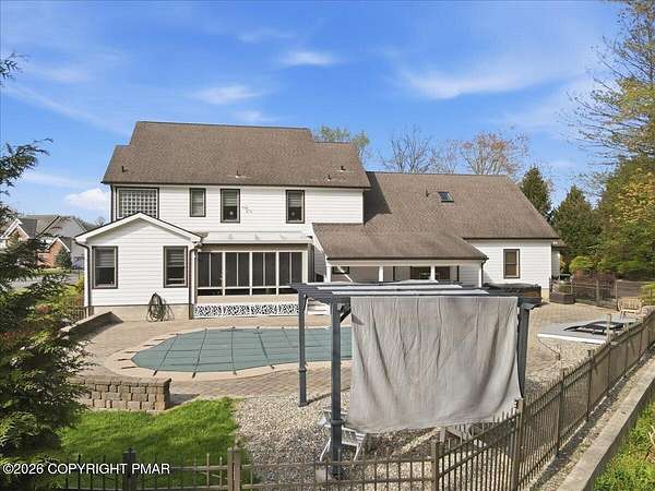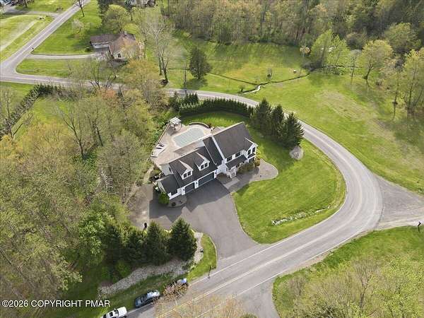 Welcome to a Colonial home that truly delivers on space, style, and lifestyle--offering 5 bedrooms, 4 full, 2 half bathrooms, and over 5,300 sq ft set on 1.54 private acres in the highly sought-after Stroudsburg School District. With no HOA, this property combines privacy and convenience just minutes from everything the Poconos has to offer. At the heart of the home, the chef's kitchen makes an immediate impression, featuring quartz countertops, a striking live-edge island, and a sunlit breakfast nook. It opens effortlessly into the formal dining area and a warm, inviting family room with custom built-ins and a dramatic stone fireplace--designed for both everyday living and memorable gatherings. A private office overlooking the backyard offers the perfect work-from-home setting. Upstairs, the primary suite is a true retreat, complete with a spa-inspired bath and radiant heated floors. A secondary en-suite, spacious bonus room, and additional bedrooms provide flexibility and comfort for a variety of living arrangements. The lower level expands your living space even further, offering the perfect setup for recreation, guests, or a home gym. Step outside and the property truly shines. The backyard is designed for resort-style living, featuring an expansive patio, covered outdoor living area with fireplace, built-in grilling station, and a saltwater in-ground pool surrounded by wrought iron fencing. A screened-in porch adds another layer of comfort, creating the perfect place to relax and unwind. Additional highlights include a dedicated laundry room and an oversized garage with new epoxy flooring and extensive storage. This is more than just a home--it's a private retreat offering space, flexibility, and a lifestyle that's hard to replicate.