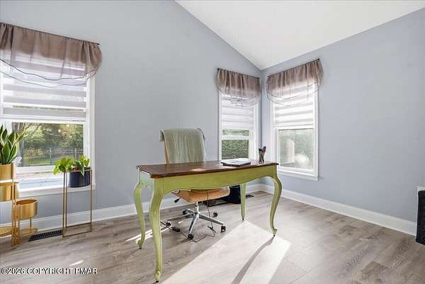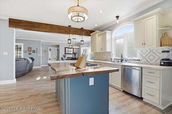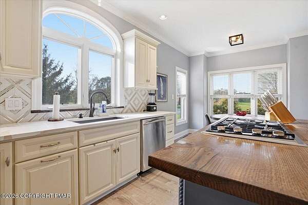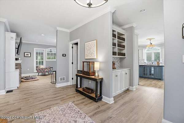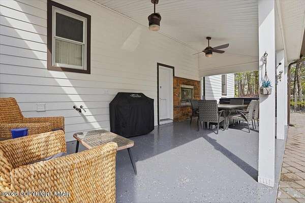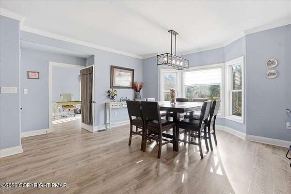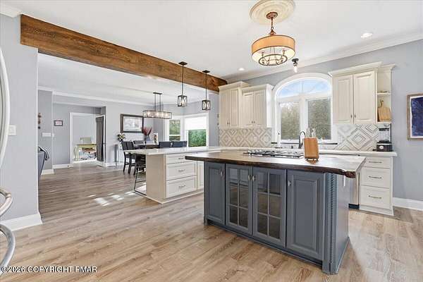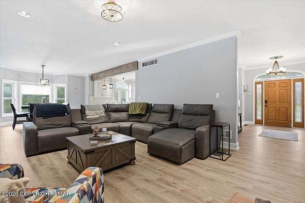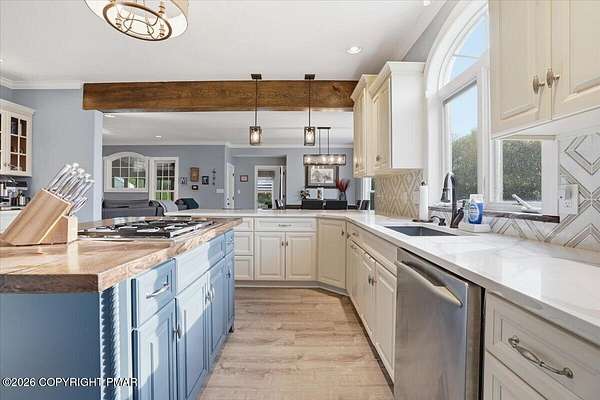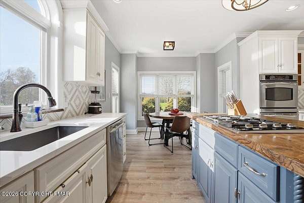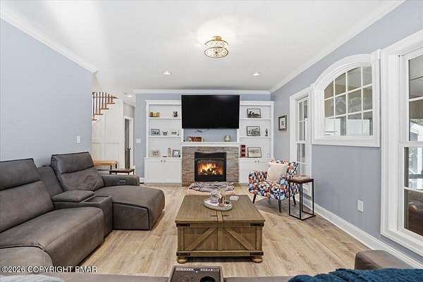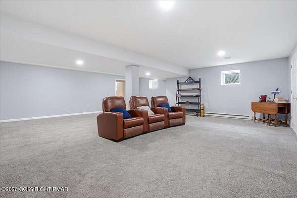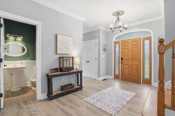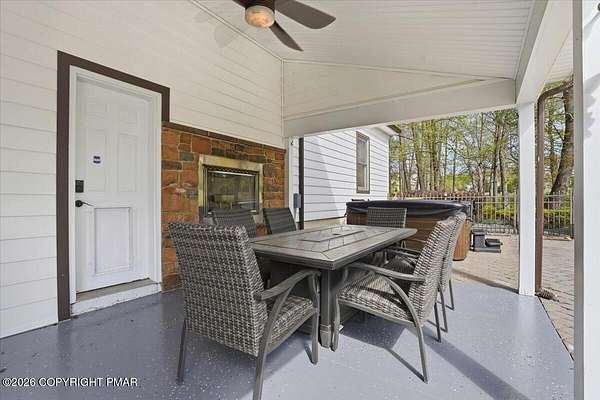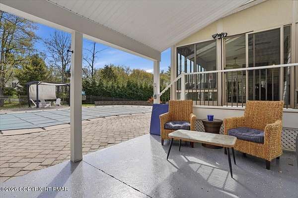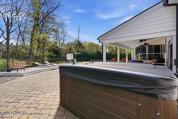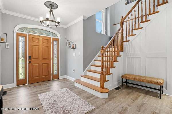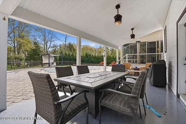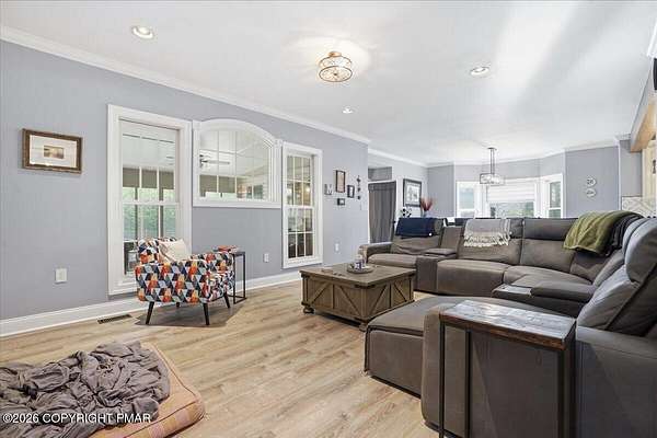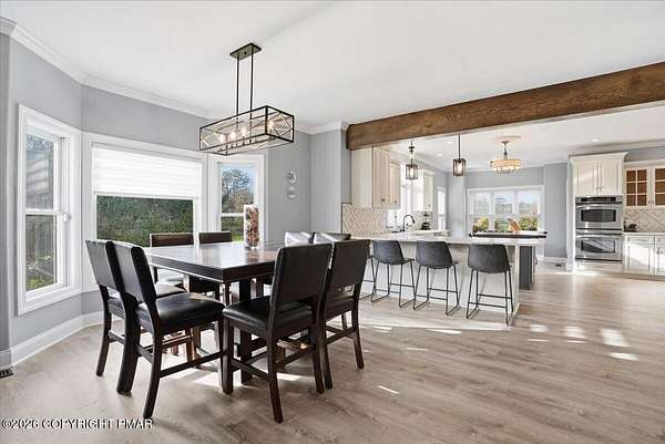 Welcome to a Colonial home that truly delivers on space, style, and lifestyle--offering 5 bedrooms, 4 full, 2 half bathrooms, and over 5,300 sq ft set on 1.54 private acres in the highly sought-after Stroudsburg School District. With no HOA, this property combines privacy and convenience just minutes from everything the Poconos has to offer. At the heart of the home, the chef's kitchen makes an immediate impression, featuring quartz countertops, a striking live-edge island, and a sunlit breakfast nook. It opens effortlessly into the formal dining area and a warm, inviting family room with custom built-ins and a dramatic stone fireplace--designed for both everyday living and memorable gatherings. A private office overlooking the backyard offers the perfect work-from-home setting. Upstairs, the primary suite is a true retreat, complete with a spa-inspired bath and radiant heated floors. A secondary en-suite, spacious bonus room, and additional bedrooms provide flexibility and comfort for a variety of living arrangements. The lower level expands your living space even further, offering the perfect setup for recreation, guests, or a home gym. Step outside and the property truly shines. The backyard is designed for resort-style living, featuring an expansive patio, covered outdoor living area with fireplace, built-in grilling station, and a saltwater in-ground pool surrounded by wrought iron fencing. A screened-in porch adds another layer of comfort, creating the perfect place to relax and unwind. Additional highlights include a dedicated laundry room and an oversized garage with new epoxy flooring and extensive storage. This is more than just a home--it's a private retreat offering space, flexibility, and a lifestyle that's hard to replicate.