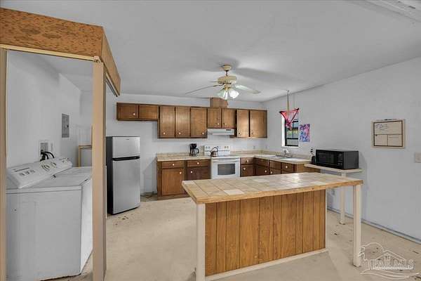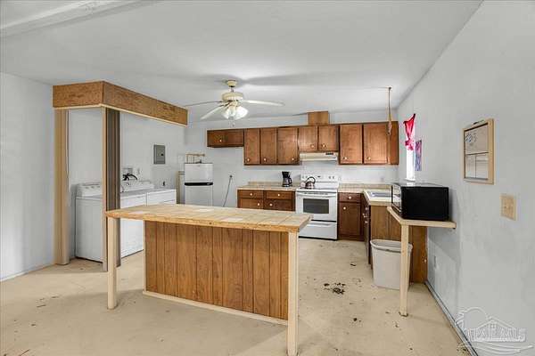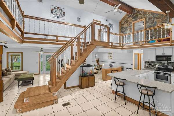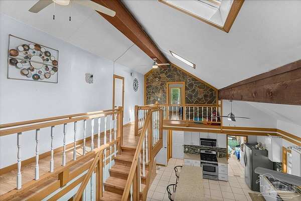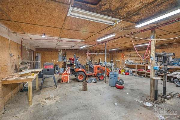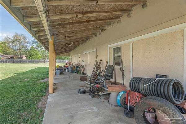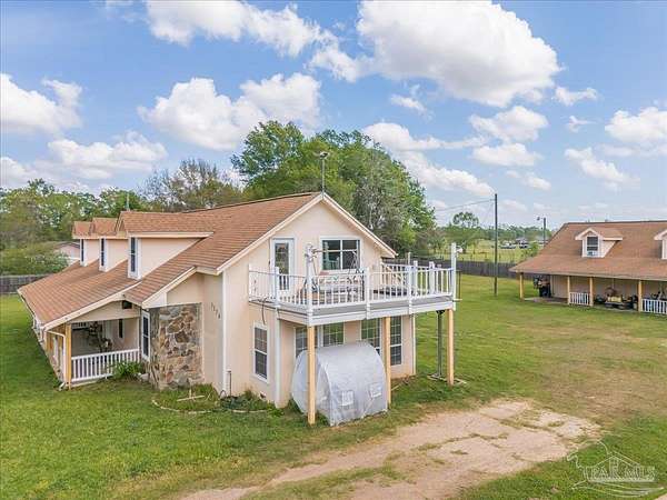 Welcome to your private retreat in Molino-where space, character, and versatility come together on nearly 2.5 ACRES, complete with tranquil KOI POND views. This GATED 4 beds 2.5 baths property offers exceptional privacy, giving you your own peaceful setting away from the hustle. As you enter the home, you will love the 20-FOOT CEILINGS, a wooden staircase with tile inlay, and a catwalk that creates a warm and inviting first impression. The den features VAULTED CEILINGS with exposed WOODEN BEAMS, SKYLIGHTS, and a woodburning FIREPLACE. The kitchen offers a WRAPAROUND BREAKFAST BAR, TILE BACKSPLASH, and flows seamlessly into the den and dining area. A rare 14x6 WALK-IN PANTRY provides exceptional storage. The main level includes two generously sized bedrooms and a full bath, plus a convenient LIFT for easy access to the second floor. Upstairs, the expansive 25x18 PRIMARY SUITE is a true retreat with VAULTED CEILINGS, a GAS FIREPLACE, WET BAR, and a private BALCONY overlooking the pond. The en-suite bath features a JETTED GARDEN TUB, double vanity, BIDET, separate shower, and walk-in closet with beautiful stone accents. An additional upstairs bedroom includes a half bath and walk-in closet. Major updates include a ROOF (2022), HVAC (2020), and a recently replaced water heater, offering peace of mind. Beyond the main home, the property features a 48x29 WORKSHOP with ELECTRICITY and WATER, perfect for hobbies or business use. A SEPARATE RESIDENCE adds incredible flexibility, offering a living room, full kitchen, dining area, four bedrooms, and two baths. This second home provides excellent potential for rental income, Airbnb, or multi-generational living, though it may benefit from some updates depending on your vision. With NO HOA, gated privacy, and endless possibilities, this property is ideal for someone looking to live, invest, or create a unique lifestyle setup with income potential. Call today for your private showing!