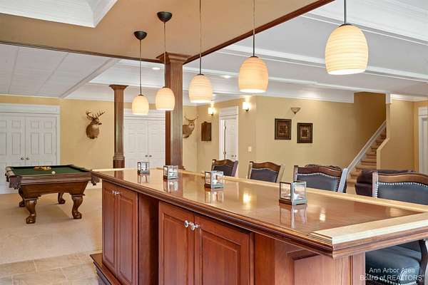 Custom Built brick & stone home with wow-factors inside & out! Showcasing 6800 sq ft, including the finished lower level, this amazing light filled floor plan offers high-end finishes throughout and unparralled privacy! The first floor showcases a generous great room with gas FP that is adjacent to the eat-in area & stunning gourmet kitchen with a large granite island & beverage bar, formal living room, formal dining room (currently a toy room), generous office that could be a 6th bedroom, 4 season sunroom, full bathroom, powder room & laundry room. Upstairs is the well-appointed primary suite with a huge WIC & private bonus room perfect for a home office, princess suite, super functional Jack & Jill bathroom between the 3rd & 4th bedrooms. Tons of closets throughout this home. Tastefully finished lower level with a large family room with game area, spectacular wet bar, 5th bedroom, full bathroom & still plenty of storage. Located on 11 private acres this haven includes a 40x60 all brick outbuilding with a loft area, RV bay plus room for lots of toys/cars. The in-ground pool, spa bubbler & patio will transform you to your private spa retreat. Offering a mature landscaping package, seasonal flower gardens and a young orchard with apple, pear, apricot and plum trees with abundant wildlife; deer, turkeys, herons, cranes and so much more. Wrap around porch with cozy forest views, a haven for morning coffee and stunning sunrise plus an amazing back deck & pergola. Ready made private trails with a play area for kids. This home has the capability for multi generation living. The acreage includes a private pond and an abundance of privacy. Located in Cobblestone Farms offering 2 miles of private walking trails. This home is the total package with an exuberant amount of space inside and outside!