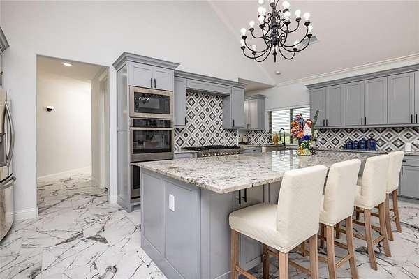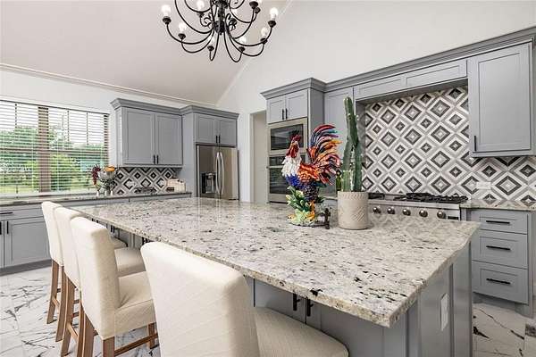- Built-In Wine Cooler, Cable TV Available, Cathedral Ceiling(s), Chandelier, Decorative Lighting, Double Vanity, Dry Bar, Eat-In Kitchen, Flat Screen Wiring, Granite Counters, Kitchen Island, Open Floorplan, Pantry, Walk-In Closet(s)