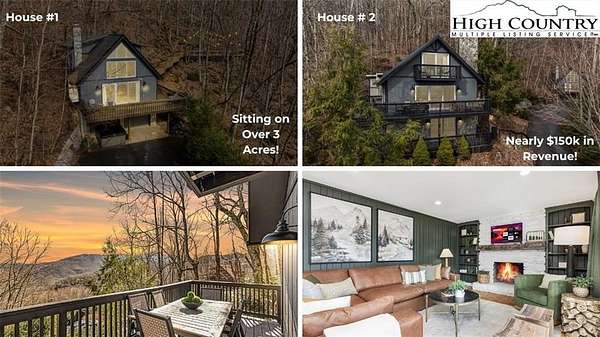 A rare opportunity to own two mountain homes with nearly $150k in Revenue on a huge 3-acre parcel in the heart of Seven Devils, offering versatility, privacy, and breathtaking long-range mountain views. Currently operating as a successful short-term rental, this unique property could be great for investors, second-home buyers, or those seeking a true mountain retreat with income potential. The main residence welcomes you with a spacious, light-filled layout designed for both comfort and entertaining. Highlights include a generous primary suite, two additional guest bedrooms, a dedicated office, and a well-appointed kitchen filled with natural light, great for gathering with family and friends. The inviting living room features a striking stone fireplace and opens to multiple decks, creating seamless indoor-outdoor living and spectacular mountain scenery. A dog run and multiple outdoor spaces further enhance the home's functionality and appeal. Just across the property, the charming A-frame guest cottage offers a peaceful escape of its own. Vaulted ceilings, a grand stone fireplace, and an open loft sleeping area create a cozy yet dramatic setting, complemented by a full bath and additional flex or office space. A large secluded viewing deck surrounded by natural mountain boulders provides a serene place to relax and take in the surrounding beauty. This exceptional property offers endless possibilities, live in one home while renting the other, maintain both as short-term rentals, create an in-law or guest retreat, or establish an epic family compound. With unmatched flexibility, stunning views, and proven rental appeal, this Seven Devils property is a truly special opportunity! Total bedroom count between both homes is 5 Bedrooms however, the main home lower level 4th bedroom does not have a window but has a closet and ensuite bathroom. The 2nd home has a loft style bedroom.