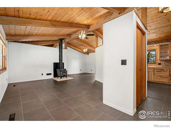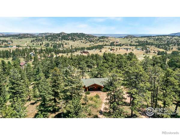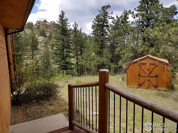 Come on Home to this mountain cabin situated on 3.95 private acres in beautiful Glacier View Meadows. Tucked away into tall pines with a circle driveway, this property promises tranquility & privacy, making it the perfect getaway or year-round home. Brand new interior paint, Korlok Luxury Vinyl Tile throughout, new ceiling fans/light fixtures installed in 2025, everything is clean and move-in ready. Beautiful, vaulted T & G ceilings with wood beams add to the rustic ambiance together with the log details on the front deck. The patio door lets the outside in and beckons you to go outside and sit awhile. Front & back decks, with composite decking, provide space to relax, entertain, enjoy star-filled night skies or simply take in the scenery. (it's not unusual to see wild turkeys, or deer strolling by to say hello.) There is also a mobility ramp on the back deck near a parking area, if needed. Imagine cozy evenings by the crackling wood-burning stove or sitting at the dining room table enjoying the view with your favorite morning beverage. The kitchen has plenty of cabinetry plus there is a large pantry in the adjacent laundry room with lots of extra storage. The Primary suite with an attached bath, also has an added walk-in closet with shelving. A good-sized 2nd bedroom (14 X 11) is separated from the primary bedroom by the main living areas. Both bedrooms have new ceiling fans installed to keep you comfortable all year round. There's a storage shed with room for your tools & gear-perfect for ongoing projects or weekend adventures. The HOA provides year 'round road maintenance, 3 small fishing ponds & area hiking trails. A full-service restaurant/bar and horseback riding are nearby. Glacier View is within 20 minutes or less from National Forests, Red Feather Lakes restaurants & stores and an easy 50-minute commute to Fort Collins. Don't miss this opportunity to own a slice of mountain paradise, where every day you might feel like you're on vacation!