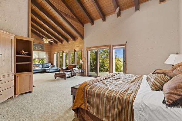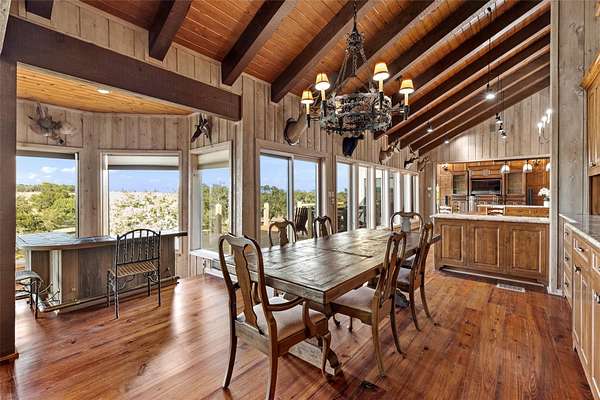- Bar, Beamed Ceilings, Bookcases, Breakfast Bar, Built-In Features, Cathedral Ceiling(s), Cedar Closet(s), Ceiling Fan(s), Ceiling-Vaulted, Chandelier, Double Vanity, Eat-In Kitchen, Entrance Foyer, Granite Counters, High Speed Internet, Kitchen Island, Multiple Dining Areas, Multiple Living Areas, Natural Woodwork, Open Floorplan, Primary Bedroom On Main, Recessed Lighting, Soaking Tub, Two Primary Suties, Walk-In Closet(s), Wet Bar