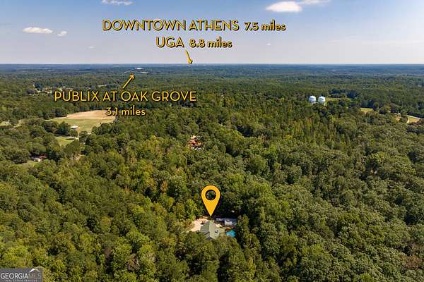 A holiday gift for you! Price improvement just in time for you to purchase this home as the best present ever! This great property is off the beaten path, but still close to everywhere you want or need to be! Located in Jackson county with an Athens address, this thoughtfully planned home sits on just under 10 private acres tucked away in the woods, yet oh so close to all the amenities Athens has to offer. Five minutes to the new Oak Grove Publix shopping center; fifteen minutes to downtown Athens or head the other way, and it is a quick drive up to the quaint city of Jefferson and I-85. Fantastic Jackson County schools. Step into the large foyer for a welcoming introduction to this home. Just beyond the foyer, soaring ceilings in the great room offer a sense of cozy spaciousness, with views to the outdoors drawing in the calm that nature provides. The kitchen offers plenty of cabinet and countertop space. A sweet breakfast nook accommodates a quick place to enjoy a meal, and there is a separate dining room for family and entertaining as well! A nice-sized pantry adjacent to the laundry room rounds out this area. At the back of the house, you'll find the primary suite which offers french doors to the outdoor living space, along with an en suite bath with dual closets, soaking tub, separate shower, and private water closet. In the front there are two more good-sized bedrooms that share a hall bath. In between the front and back bedroom spaces is also a wonderful flex room that is currently being used as an office. Upstairs you will find yet another bedroom and full bath, as well as an additional living/hangout space. Spend your days lounging poolside on the expansive covered back porch, or watching the deer graze from the front porch rocking chairs! Plenty of room for a mini-farm, with a small barn, paddock, and small open pasture to the right of the house. A hunting enthusiast will enjoy multiple sites for stands and blinds. Property has been food-plotted in the past, and there are generations of deer that still visit. Wildlife abounds! The home has an attached two car garage that is level with the main floor and an additional, separate two-door garage/shop at the end of the driveway. There is also an unfinished daylight basement with a half bath. The basement has both a roll-up door and a walk through door. SO MUCH space for all your storage and/or workshop needs. If you love the outdoors, enjoy your privacy, and don't want the hassle of an HOA, you'll want to call 556 Fuller Road home! Make your appointment to see it today!