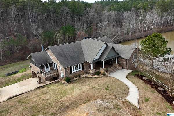 Welcome to 556 Martin Lane, an exceptional 5-bedroom, 3-bath waterfront estate set on over 13 acres with 300+ feet of shoreline. A gracious front patio and beautiful wrought-iron doors open to an expansive, light-filled living space featuring exposed ceiling beams, a striking floor-to-ceiling stone fireplace, & abundant natural light. The chef's kitchen blends elegance & function with a large island and breakfast bar, gas cooktop, stainless steel appliances, & refined tile backsplash, while the adjacent dining area is ideal for entertaining. The primary suite offers a private retreat with access to its own covered porch & a spa-inspired bath complete with a soaking tub, walk-in shower, dual vanities, & a custom walk-in closet. Outdoor living shines with an expansive back porch & separate covered patio overlooking breathtaking water views. Additional features include a 2-car garage, barn with ample storage, & endless outdoor possibilities. Schedule your private showing today!