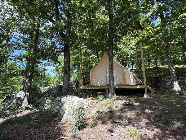 Est $947/mo4.9 acres offering privacy close to the end of the road and no restrictions! Property features electric, rural water, septic, and a new storm shelter (11/2024). Includes a leveled shipping container with door, window, and wood stove. Large pad for camper and a 2020 camping trailer included in the purchase price. Multiple potential build sites and a viewing deck overlooking a finger of the Buffalo River Grand Canyon - endless possibilities for your dream getaway, build, or retreat.