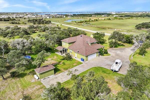 Nestled on over 5 acres in the coveted Sanctuary of Rockport, this spacious home offers the perfect blend of privacy, comfort, and convenience--just minutes from town. Designed with flexibility in mind, the residence features two primary suites (one upstairs and one downstairs), plus two additional guest rooms, ideal for family and visitors alike. Upstairs, rich Brazilian koa flooring adds warmth and character, complemented by an abundance of windows that flood the home with natural light and frame the surrounding wildlife views. The layout offers a semi-open floor plan, making it easy to enjoy both gathering spaces and private retreats. The newly remodeled kitchen shines with modern updates, while outside, you'll find an above-ground pool perfect for cooling off on warm Texas days. A large garage and ample storage throughout the home ensure room for everything. For hobbyists, ranching, or storage, the property includes a 50x60 barn with four roll-up doors, offering endless possibilities. Whether relaxing on your acreage, watching wildlife, or entertaining guests, this property combines the serenity of country living with close-to-town convenience.