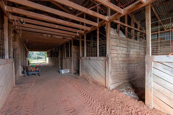 - Barn(s), Covered Porch, Fencing, Outbuildings, Pond, Pool, Stable