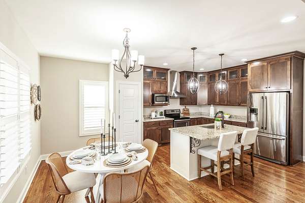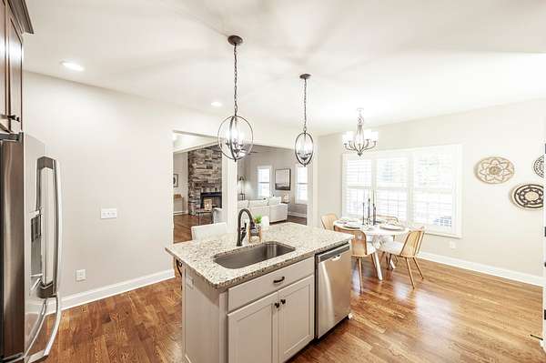 Set on 4.67 picturesque acres just north of Nashville, this exceptional property offers space, privacy, and versatility rarely found. The home features a 2-car attached garage plus an oversized 2-car detached garage that is heated and cooled, with unfinished space above--an incredible opportunity to create a guest suite, home office, game room, studio, or simply enjoy abundant storage. Inside, you're welcomed by beautiful hardwood floors, an open floor plan, and timeless plantation shutters throughout. A spacious dining room greets you at the entry and flows seamlessly into the living and kitchen areas, making the home ideal for both everyday living and entertaining. The living room is anchored by a stunning stone fireplace with a wood mantel and warm neutral tones that provide the perfect canvas to make the space your own. The kitchen is both functional and stylish, featuring ceiling-height-stained cabinetry, granite countertops, an island, pantry, and an eat-in dining area. Tucked behind the kitchen is a generous utility room with extra cabinet storage and a convenient powder room. The attached garage connects to the home just off the kitchen--perfect for easy grocery unloading and day-to-day convenience. Step outside from the living and kitchen areas onto the deck overlooking your private backyard oasis. This property boasts an in-ground sports pool and hot tub, ideal for relaxing or entertaining. The backyard is thoughtfully fenced into two separate sections, offering flexibility for pets, gardening, play space, or keeping the pool area separate. The main level includes everything needed for daily living, including a spacious primary suite with three closets and a spa-like bath featuring tile flooring, a soaking tub, a large frameless glass shower, dual vanities, and a private water closet. Upstairs, you'll find two well-sized bedrooms, a full bath, and an expansive bonus/flex room perfect for a media room, office, gym, playroom, or multi-use space.
