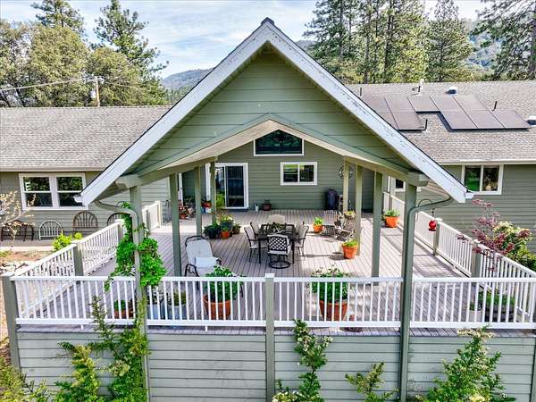 Picture this: a sun-drenched morning on your 572-square-foot front porch, coffee in hand, Bald Rock and the Sierra Nevadas painting the horizon in gold. Welcome to 5564 Parker Dr where Mariposa's beloved Ponderosa Basin neighborhood delivers 2,783 square feet of turnkey living that feels like a deep exhale. A circular driveway wrapped in charming white picket fencing welcomes you home with undeniable curb appeal. Step through elegant wood-framed sliding glass doors into an interior freshly painted throughout, where oversized windows in like-new condition pour natural light into every corner. This home doesn't just shelter it glows. The primary bedroom is your personal sanctuary, complete with a propane wood stove for those crisp mountain evenings, a generous walk-in closet, and a beautifully remodeled bathroom featuring a soaking tub and walk-in shower. The open kitchen, anchored by a large eating bar, becomes the natural gathering point where conversations flow and meals become memories. Now step outside because this is where the magic multiplies. Over 1,000 square feet of expansive decking unfolds into lush gardens and mature trees, creating an entertainer's paradise beneath open skies. The fully fenced acreage, with brand-new fencing completed in 2025, offers remarkable versatility including space for horses if that's your dream. Smart upgrades keep daily living effortless: whole-house fan, forced air heating and cooling, a newer tankless water heater, and solar availability to tame those utility bills. Quality craftsmanship meets thoughtful efficiency throughout. Adventure lives just beyond your fence line, with hiking trails, horseback riding paths, BLM land, and the Miami Creek OHV staging area in nearby Fish Camp mere minutes away along with the World Renowned Yosemite National Park. This is where wide-open spaces meet meticulous care a rare Mariposa gem built for living boldly and breathing deeply.