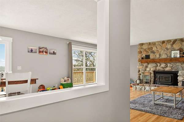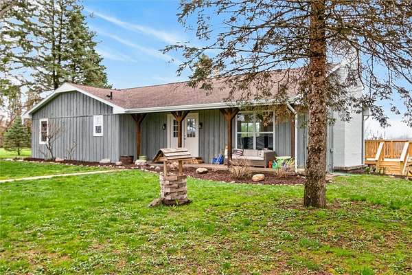 Welcome to your slice of countryside serenity! This beautifully maintained 2-bedroom, 2-bath ranch offers 1,309 sq ft of living space, with a finished walk-out basement that nearly doubles the total. Built in 1972, this board-and-batten wood-sided home is set back from the road, providing peace and privacy. Inside, you'll find an open floor plan connecting the kitchen, dining, and living areas. A stunning stone fireplace serves as the focal point, adding warmth and character, while large windows frame views of the pond and surrounding landscape. The main bath was stylishly updated in 2023, and the finished walk-out basement adds flexible space ideal for a family room or potential third bedroom. Step outside to a spacious back deck overlooking the countryside, or relax on the covered front porch with your morning coffee. A detached garage/outbuilding offers great storage or workshop potential. Recent updates include new windows, doors, and flooring (2022). Located in the desirable Marion School District, this home blends comfort, charm, and country living. Taxes are from before subdivision so will go down. Open House: Saturday 04/25, 12:30-2:00 PM Offers Due: Monday 04/27 at 11:00 AM