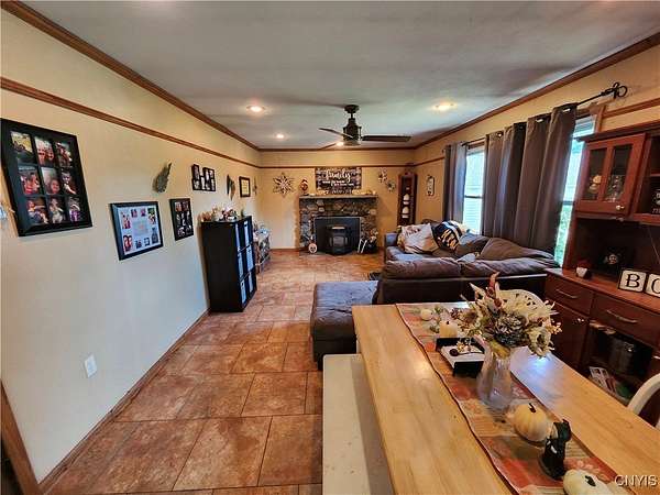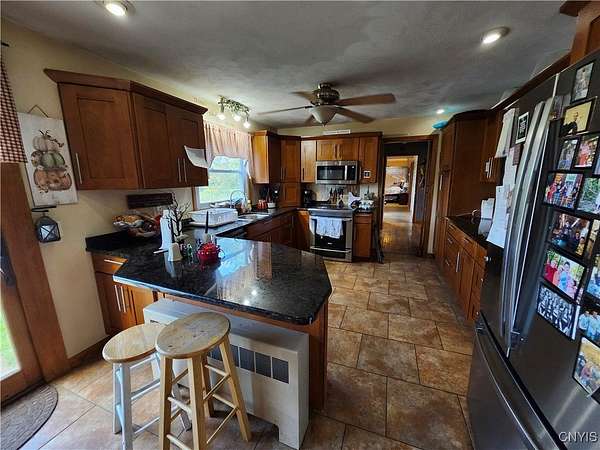 Classic colonial perfectly set on a hillside just North of Cazenovia Lake. Enjoy that country feeling in this well built colonial with updated kitchen, beautiful first floor en suite primary bedroom addition, in ground pool and much more! Newer roof and boiler plus radiant in floor heat on first floor plus pellet stove for off grid heating. Wall unit a/c in family room and split unit in primary bedroom. Full basement with lots of storage space plus four good sized bedrooms and two additional baths on second floor (main hall bath had leaking toilet and water is off - sold as-is). Bonus detached garage with power for workshop or additional 'toys'. Enjoy living a few minuites from Caz lake and Oneida Lake while less than 25 min. to SU, Hospitals and Downtown. Located in top rated Chittenango School District with Cazenovia mailing address.