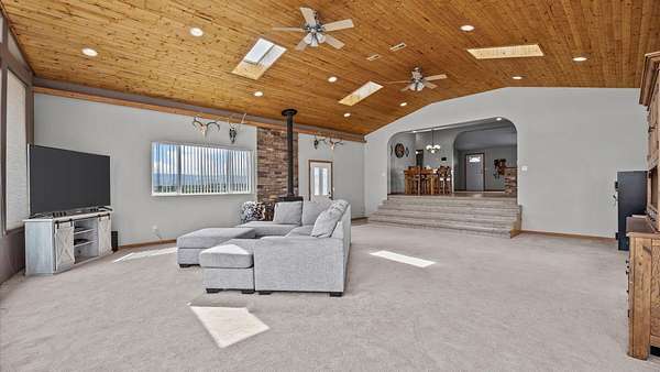 Tucked away on 5 private acres with privacy, this property offers the kind of space and serenity that's hard to find. With sweeping, unobstructed views of the Grand Mesa, you'll enjoy a lifestyle that blends comfort, privacy, and endless possibilities. The well-cared-for 3-bedroom, 2-bath home features an extra-large bonus room- perfect for a family room, hobby space, or home office. The open living area is ideal for gatherings, while the split floorplan provides a private master retreat complete with a walk-in closet and a luxurious five-piece bath, including a soaking tub and walk-in shower. Outside, the amenities are unmatched: a massive 40x60 pole barn, a horse stable, a round pen, and a chicken coop. The detached three-car garage includes an oversized door for larger vehicles or equipment. All outbuildings have power, and with irrigation water included, keeping your property lush is simple. Best of all, this property backs to over 48,000 acres of BLM public land, offering trails, wildlife, and adventure right from your doorstep. This is more than just a home, it's a private retreat with room to live, work, and play.