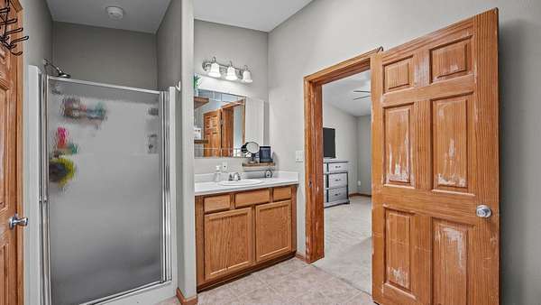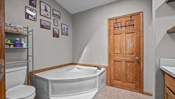 - Ceiling Fans, Garden Tub Roman Tub, Kitchen Dining Combo, Laminate Counters, Main Level Primary, Solid Surface Counters, Vaulted Ceilings, Walk In Closets, Walk In Shower, Window Treatments