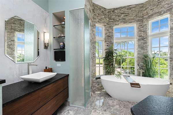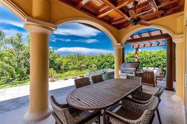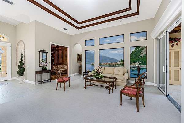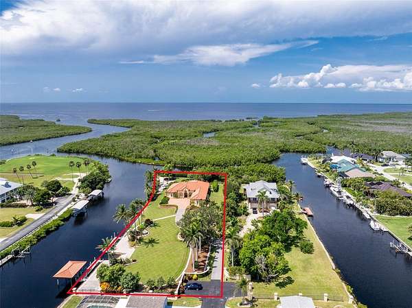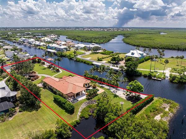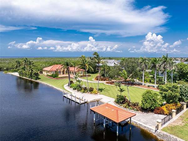 Experience an unparalleled waterfront lifestyle with this extraordinary Punta Gorda compound—an estate unmatched in privacy, land, and luxury throughout the surrounding area. Set on just under 2 acres with no deed restrictions, this private gated property offers resort-style living, exceptional boating amenities, and expansive grounds rarely found in Southwest Florida. Located on a quiet dead-end canal with minimal boat traffic and an easy idle-out to Charlotte Harbor, the setting is peaceful, private, and ideal for boating enthusiasts, and the home itself has never flooded. Built by Arthur Rutenberg and pristinely maintained by its original owner, the residence spans 3,279 sq ft with an open layout designed for elevated entertaining. The updated kitchen features Bosch black stainless appliances and generous workspace, while the living room showcases a Lake Como–inspired mural that enhances the Mediterranean feel of the home. The primary suite offers a spa-inspired bath featuring a stunning rain shower, an electric bidet, separate vanities, and a beautiful stone soaking tub framed by elegant rain glass, all positioned to capture serene morning sunrise views to begin your day. The kitchen, family room, and primary suite were all refreshed in 2022. The one-of-a-kind den is custom-built with five different woods, creating a warm, rich, and distinctive statement space ideal for an executive office or optional additional bedroom. Outdoor living defines this compound, featuring an open-air heated saltwater pool and spa, a private shell beach and firepit, and luxurious landscaping that adds a park-like setting, along with multiple seating areas both under-truss and within a charming gazebo off the guest room surrounded by a garden—perfect for enjoying expansive sunset views and watching boaters move through Buckley’s Pass. For boaters, the property offers two 40-foot docks, a boathouse over the boat lift with power and water, and a private boat launch—an exceedingly rare amenity in the area—along with smooth idle-speed access to Charlotte Harbor. Additional features include a 3-car epoxy-floor garage, impact windows and doors, a clay roof, an updated water heater and pool pump, and low Charlotte County taxes. With nearly 2 acres of usable land, the estate also provides ample space to add a pickleball court, tennis court, basketball court, or a full guest house for enhanced future value. This remarkable offering is more than a home—it's a private coastal compound delivering unmatched land, luxury, privacy, and boating amenities, standing alone as one of the most distinctive properties in all of Southwest Florida.