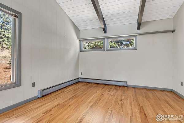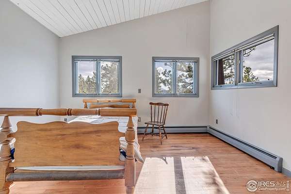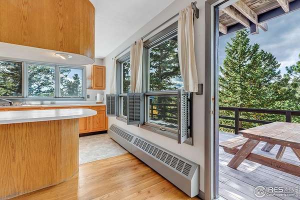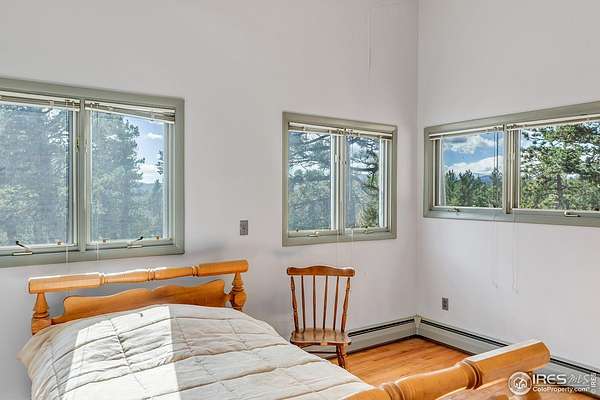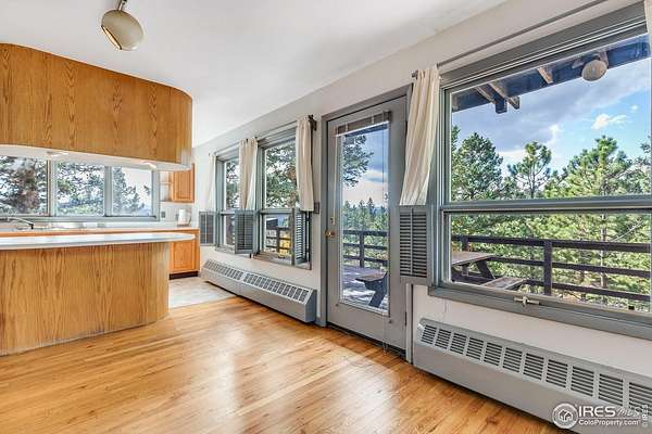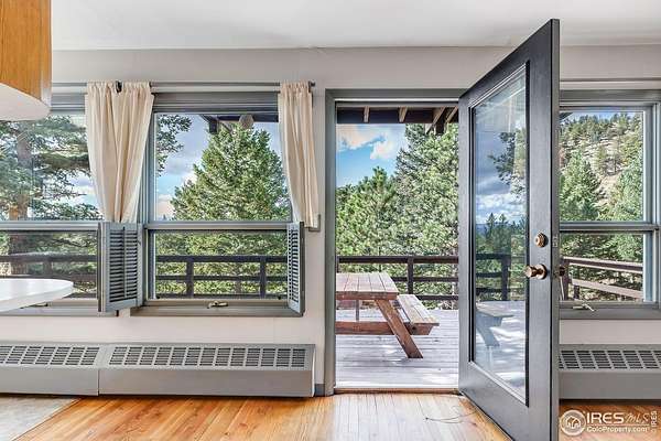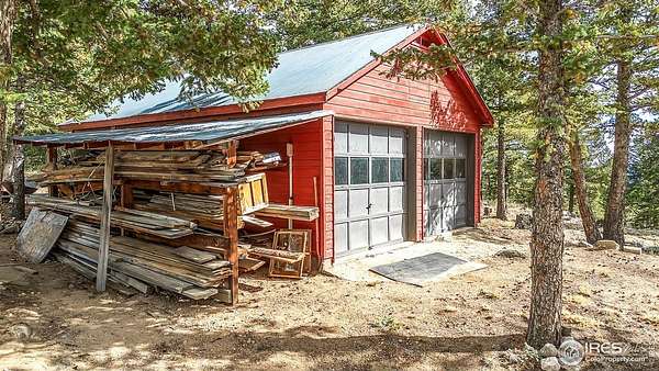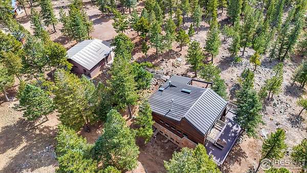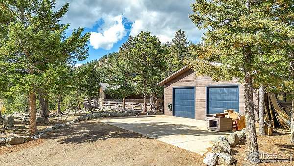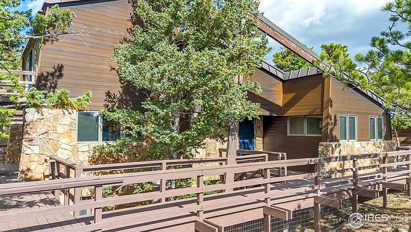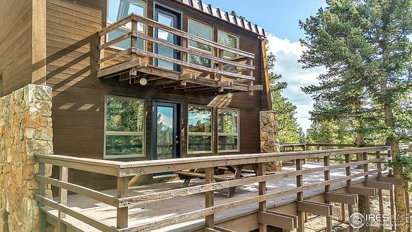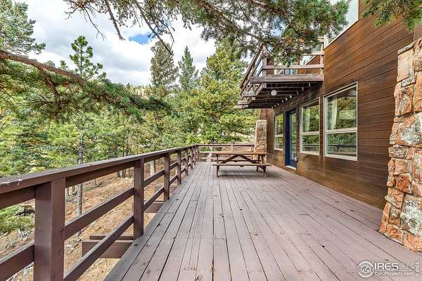Serene mountain retreat nestled on 18 usable acres, bordered entirely by National Forest. This exceptionally private property offers lovely views of the Back Range and unparalleled access to nature. Inside, you'll find rich wood flooring throughout the main level, lending warmth and charm to every room. The primary suite features a private bath and walk-in closet, while the two lower-level bedrooms each open to the outdoors through sliding glass doors. Step outside onto 900 square feet of wrap-around decking, ideal for entertaining or simply soaking in the peaceful surroundings. A fenced dog run adds convenience for pet lovers. Car enthusiasts or hobbyists will appreciate the two detached garages with space for up to four vehicles. Just 17 minutes from downtown Boulder, this unique property offers the best of both worlds: peaceful seclusion and close proximity to town. A perfect haven for families who cherish nature, privacy, and the Colorado lifestyle.