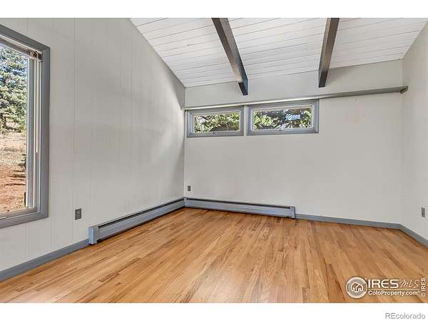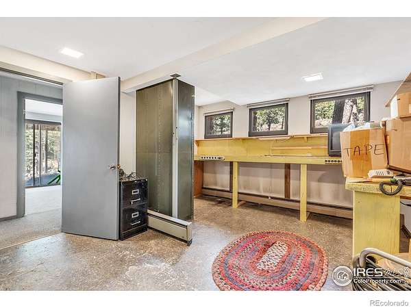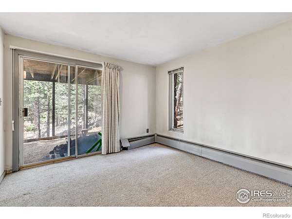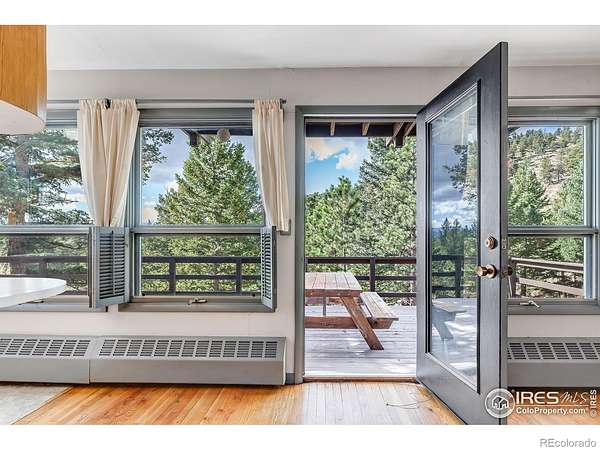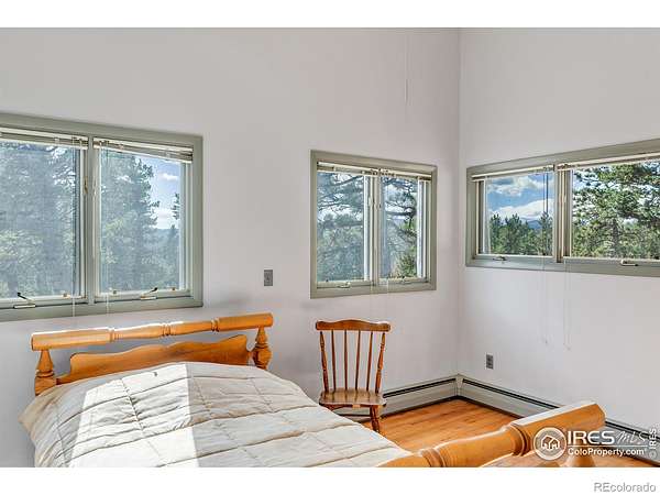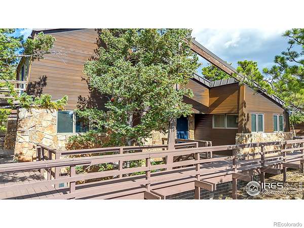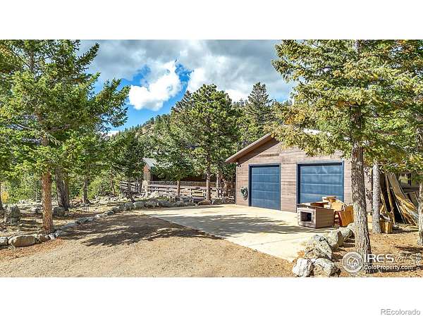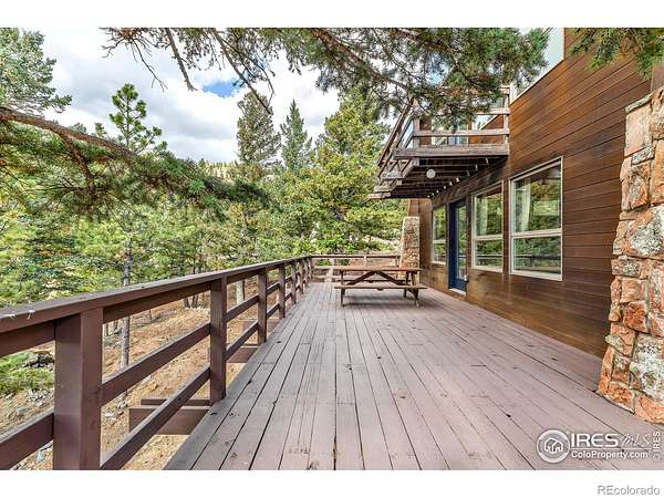 Serene mountain retreat nestled on 18 usable acres, bordered entirely by National Forest. This exceptionally private property offers lovely views of the Back Range and unparalleled access to nature. Inside, you'll find rich wood flooring throughout the main level, lending warmth and charm to every room. The primary suite features a private bath and walk-in closet, while the two lower-level bedrooms each open to the outdoors through sliding glass doors. Step outside onto 900 square feet of wrap-around decking, ideal for entertaining or simply soaking in the peaceful surroundings. A fenced dog run adds convenience for pet lovers. Car enthusiasts or hobbyists will appreciate the two detached garages with space for up to four vehicles. New septic tank and furnace! Just 17 minutes from downtown Boulder, this unique property offers the best of both worlds: peaceful seclusion and close proximity to town. A perfect haven for families who cherish nature, privacy, and the Colorado lifestyle.
