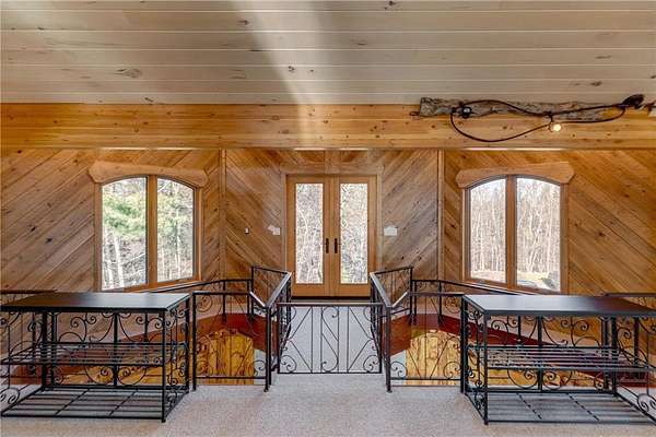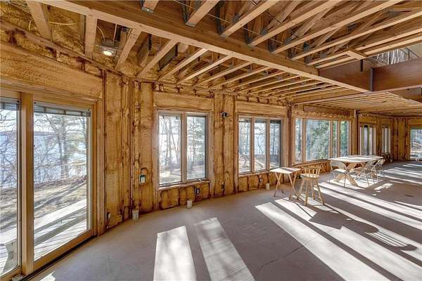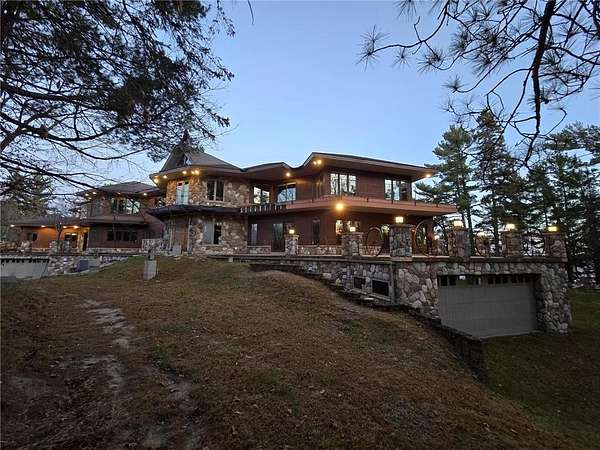 Discover a once-in-a-life opportunity on Ten Mile Lake, one of Minnesota's most pristine and sought-after lakes. This extraordinary 14,000+ sqft lakefront estate is ready for completion to your exact vision with a commercial-grade steel and concrete structure, engineered for durability and designed for elegance. Nestled on 4.3 wooded acres with 466+ feet of hard-bottom shoreline, the property combines privacy, architectural grandeur with an unparalleled natural setting. The groundwork, foundation, and structure are complete, a significant head start for anyone seeking to create a world-class home without years of planning and permitting. The exterior showcases hand-cut shakes, stone accents, and several decks for outdoor entertaining and beautiful lake views. Inside, the infrastructure is already in place, including spray foam insulation, in-floor hydronic heating throughout, and a high-efficiency boiler system with off-peak electric service. This impressive four-level home offers exceptional amenities, including a commercial-sized elevator serving all levels. A unique chimney chase spans all four floors, with a service elevator designed to deliver fireplace wood and materials with ease. Additional highlights include RV parking with hook-up services, a commercial-sized electric generator supporting the entire property. Outdoor decks and garage pads are equipped with in-floor heat to keep snow and ice at bay, ensuring year-round comfort and convenience. This property offers unmatched versatility it could serve as a private family estate, a corporate retreat, a luxury VRBO or even a recovery and wellness center, offering tranquility and inspiration in a serene lakeside setting. With the home unfinished, the new owner has the freedom to customize every finish, layout, and design element to suit their vision. The main level was envisioned with a grand owner's suite featuring a fireplace, dual bathrooms, walk in closet, lake-view walkouts, and plumbing for a sunken tub with breathtaking views of both the lake and woods. The kitchen area is designed to host a large island, food prep station, and even a wood-fired pizza oven built into the central stone fireplace an inviting centerpiece for family and guests. A spacious dining area, powder room, dog wash station, and guest entrance with private garage parking and a covered grand entrance complete this level. The upper level was designed for flexible living, including multiple bedrooms with private bathrooms, offices, and hobby spaces. Other ideas include a entertainment area, wet bar, movie area, and space for a game room or workout room, making this home ideal for entertaining and family gatherings. The lower-levels features over 4,000 sq ft of garage space, shop area, recreational area, underground garage features a convenient drive-through design, ideal for snowmobiles, boats, UTVs or recreational storage perfect for year-round Minnesota adventures. An air compressor system connects to both garages for workshop projects or equipment maintenance. Because the home remains unfinished, it presents a rare chance to customize every finish and design element to your exact style modern, rustic, or traditional. Every system and structure has been built for longevity and performance, awaiting your final creative touch. Ten Mile Lake spans over 5,000 acres and reaches depths of 208 feet, earning a reputation as one of Minnesota's clearest, deepest, and most sought-after lakes, it offers exceptional water quality, fishing, and boating. Also, known for its outstanding fishing walleye, pike, bass and panfish await. Located near Hackensack and Walker, you're close to charming restaurants, boutique shopping, and year-round recreation. Bring your vision to life crafting a masterpiece estate that blends luxury, craftsmanship, and the timeless beauty of Ten Mile Lake. Bring your vision, builder, imagination and make this remarkable estate your legacy.
