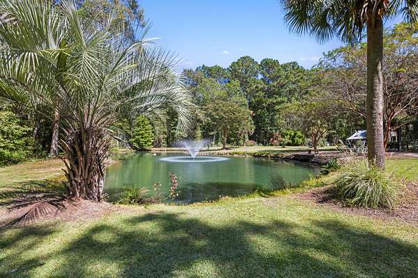 Surrounded by mature Lowcountry oaks and lush native trees, this 4-bedroom + office, 3-bath home sits on over four acres and radiates serenity. From the moment you arrive, the gentle sound of water from the expansive pond water fountain and the soft rustle of the trees set the tone for a space that feels both grounding and inspiring. Inside, you'll find light-filled living spaces with hardwood floors and an inviting, organic layout that flows effortlessly from room to room. The kitchen and hallways offer ample storage, while the primary suite features two walk-in closets and a spacious master bath with dual vanities, a walk-in shower, and a soaking tub.Two bedrooms on the opposing side of the house offer privacy for kids or guests and share a hall bath. A loft and separate dedicated office provide the flexibility to create cozy reading nooks, creative studios, or restful retreats. Step outside to a large back deck and patio, perfect for entertainment, outdoor dining, or unwinding after a long day. A two-car garage, detached storage building, and expansive private driveway add practicality to this peaceful setting. Just 25 minutes from some of Charleston's award-winning restaurants The Royal Tern, Wild Olive, and Lost Isle etc. and just 10 minutes to shopping and dining at various shopping centers, including West Ashley Place & Bees Ferry Landing. This property blends rural peace with Charleston convenience. This home presents an opportunity to restore, renew, and create your own special retreat a peaceful sanctuary where the Lowcountry meets balance, beauty, and flow.